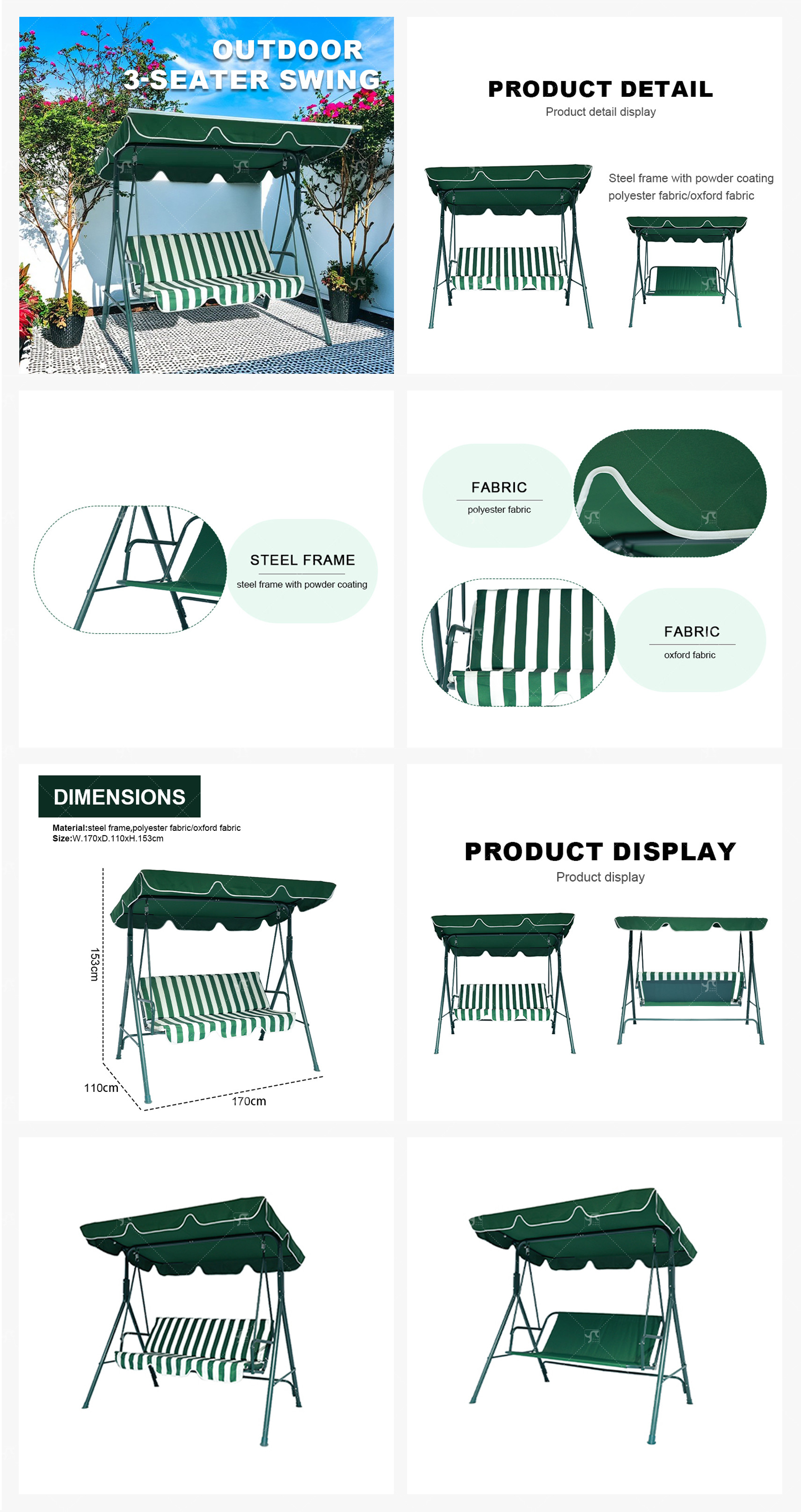 Hot Sale Outdoor 3 Seats Teslin Garden Swing Chair for Balcony-Cloudyoutdoor