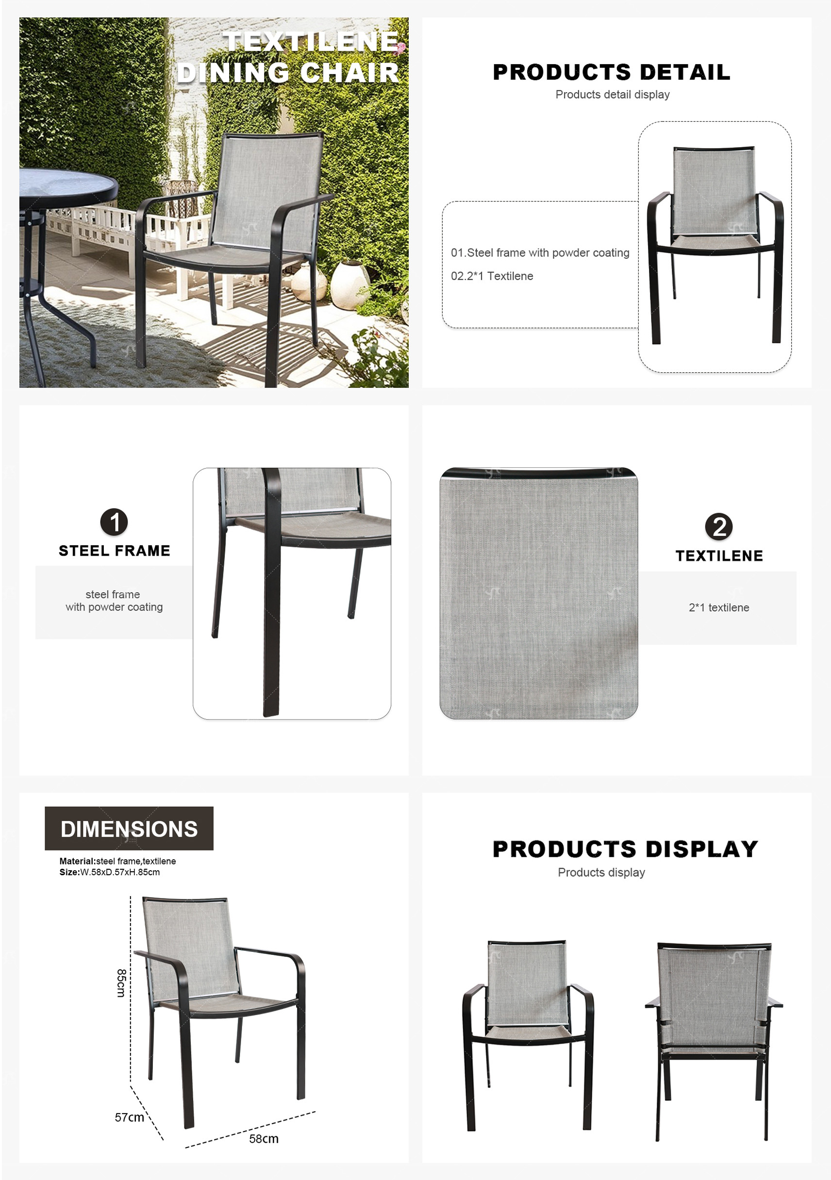 2x1 Teslin Modern Comfort Flex Metal Patio Chair with Arm Popular Outdoor Garden Chair for Park Use Teslin Design