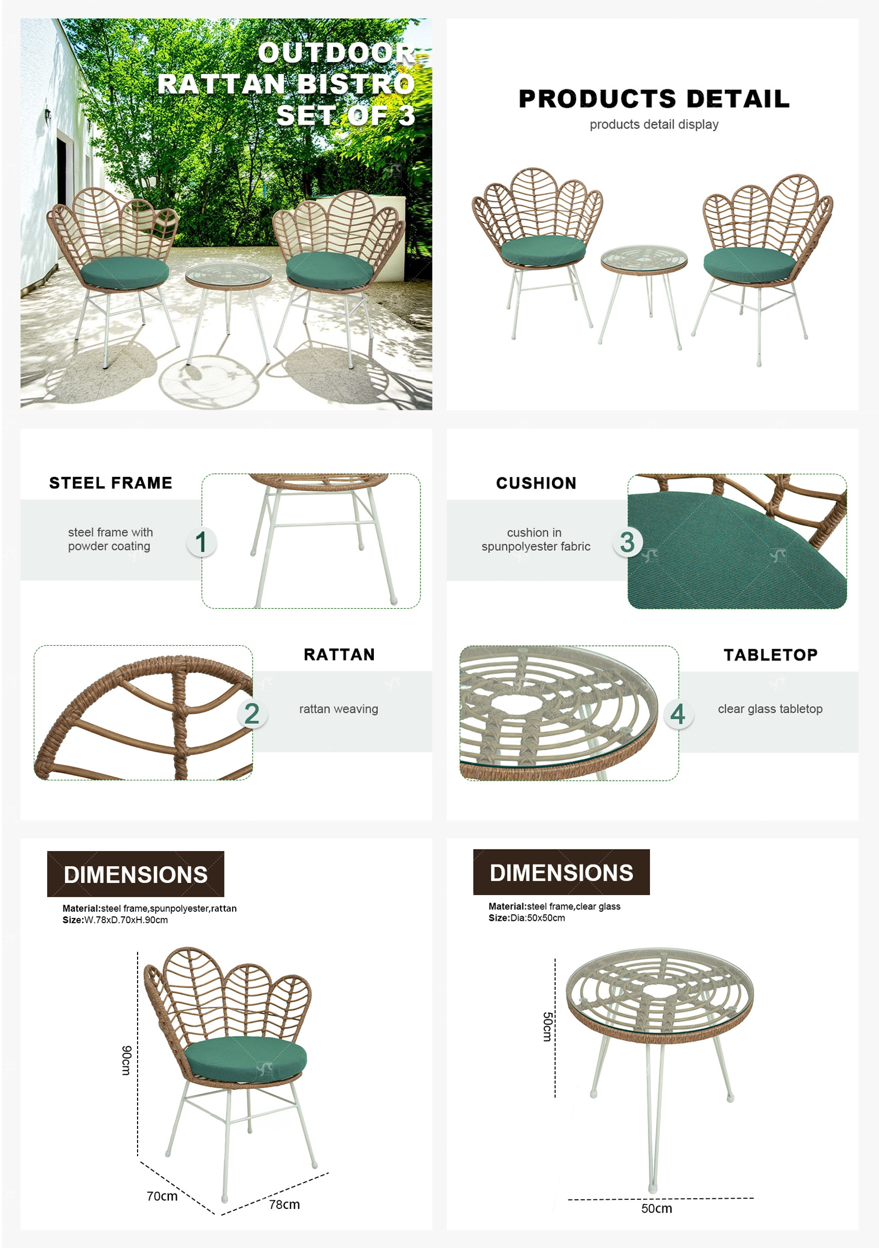 Steel Pipe Rattan Casual Three-piece Outdoor Coffee Table and Chair Set
