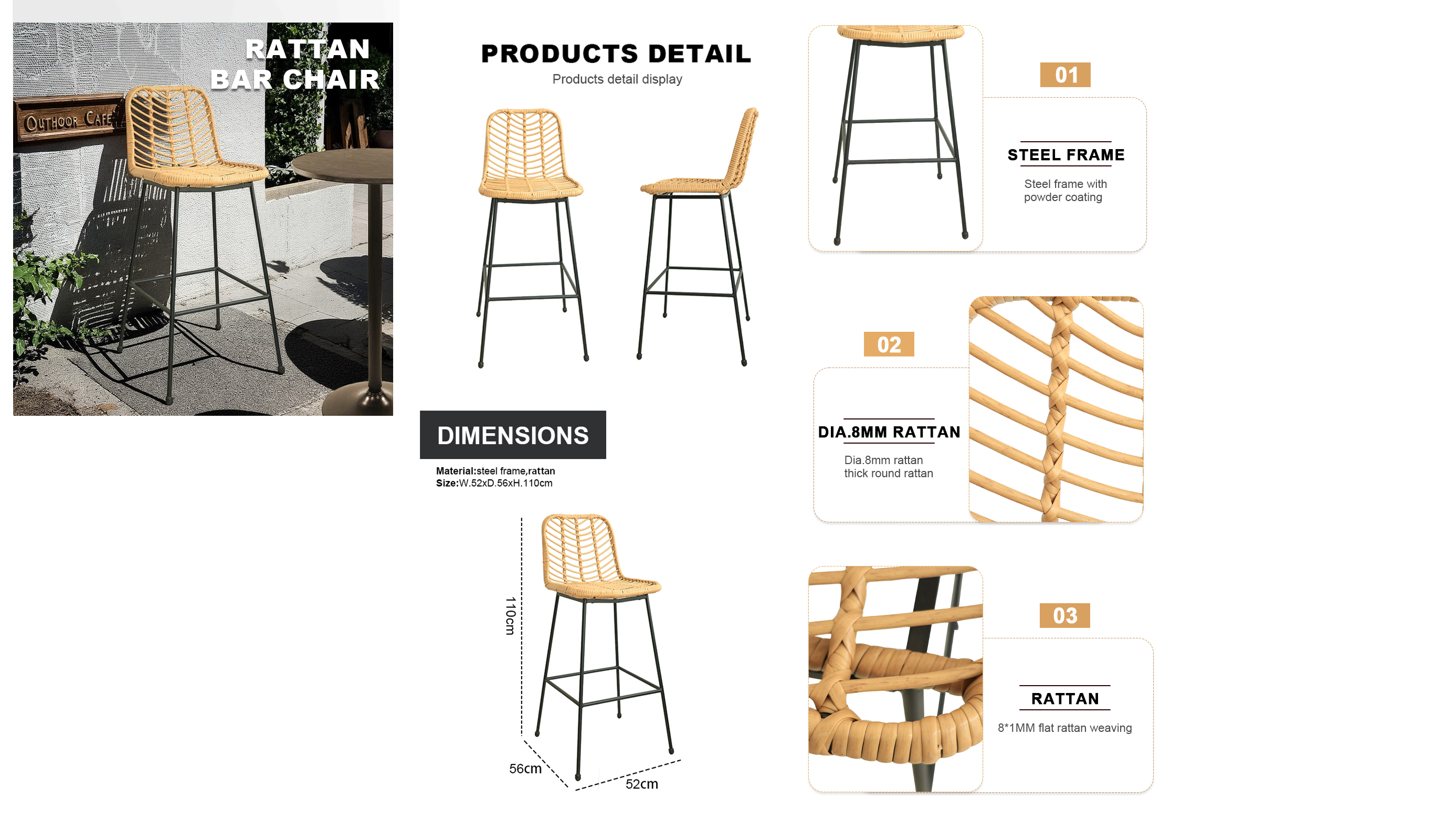 Iron Tube Modern Design Outdoor Garden Rattan Balcony Chair High Bar Chair with Rattan Single Rattan bar Chair