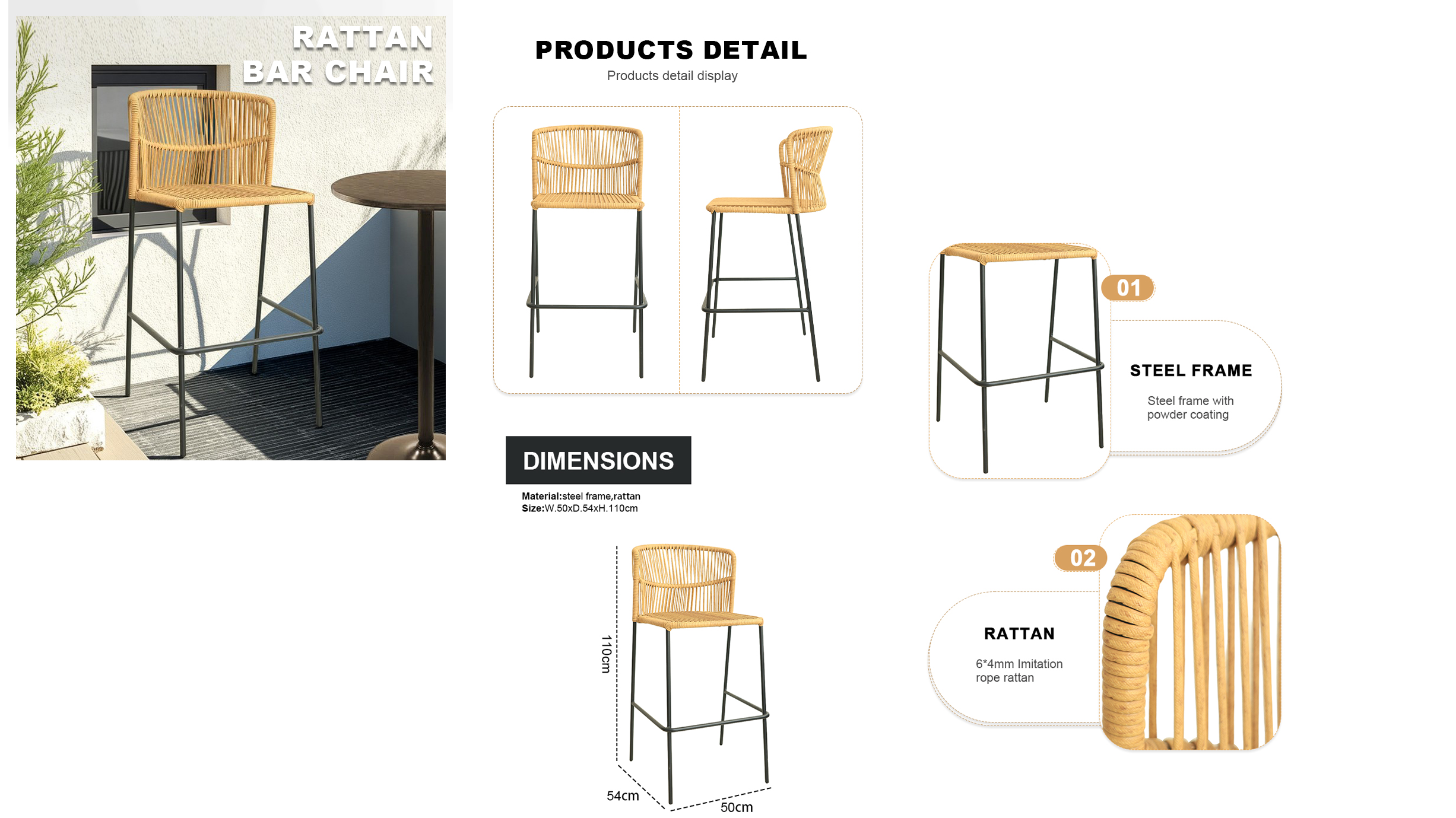 Iron Tube Modern Design Outdoor Garden Rattan Balcony Chair High Bar Chair with Rattan Single Rattan bar Chair