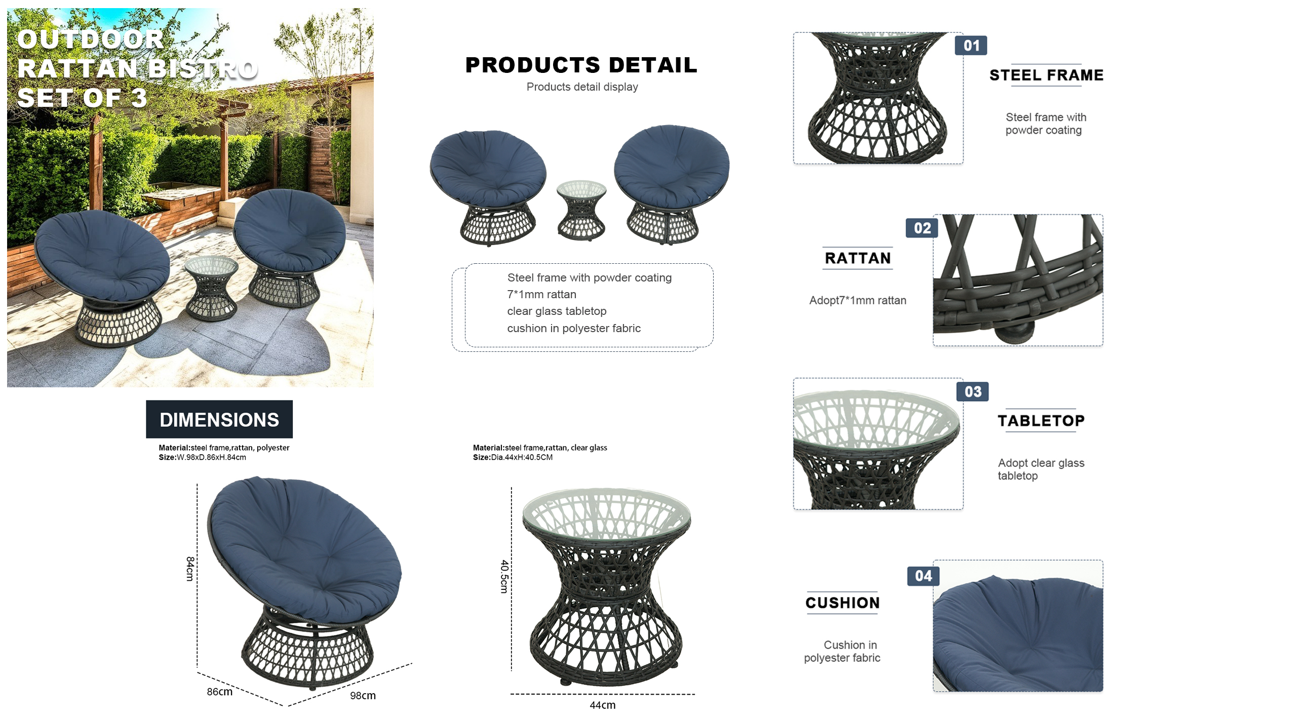 Steel Rattan Bistro Set of 3