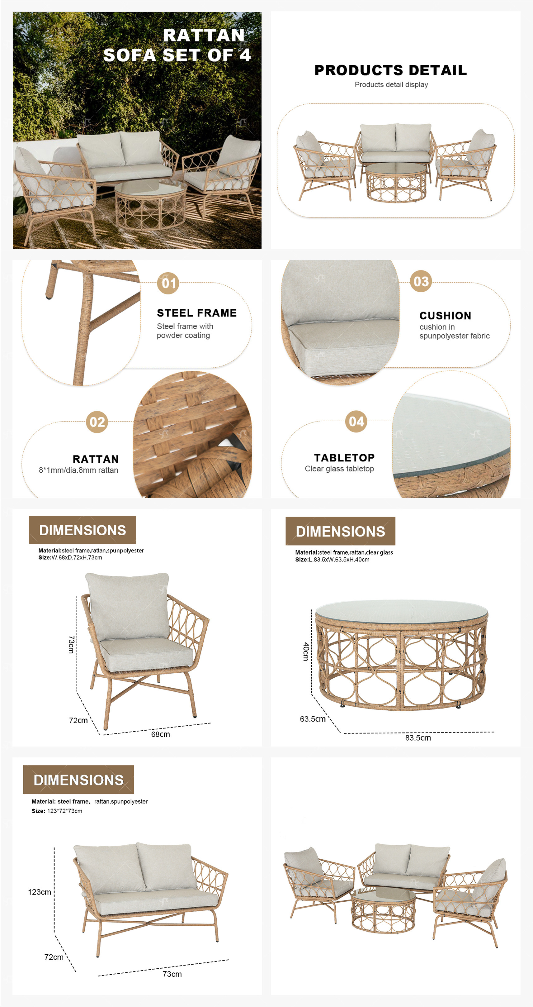 4 Pieces Hot Selling Modern Metal Outdoor Furniture rattan sofa Set - All-Weather Patio Garden Yard Dining sofa Set of 4