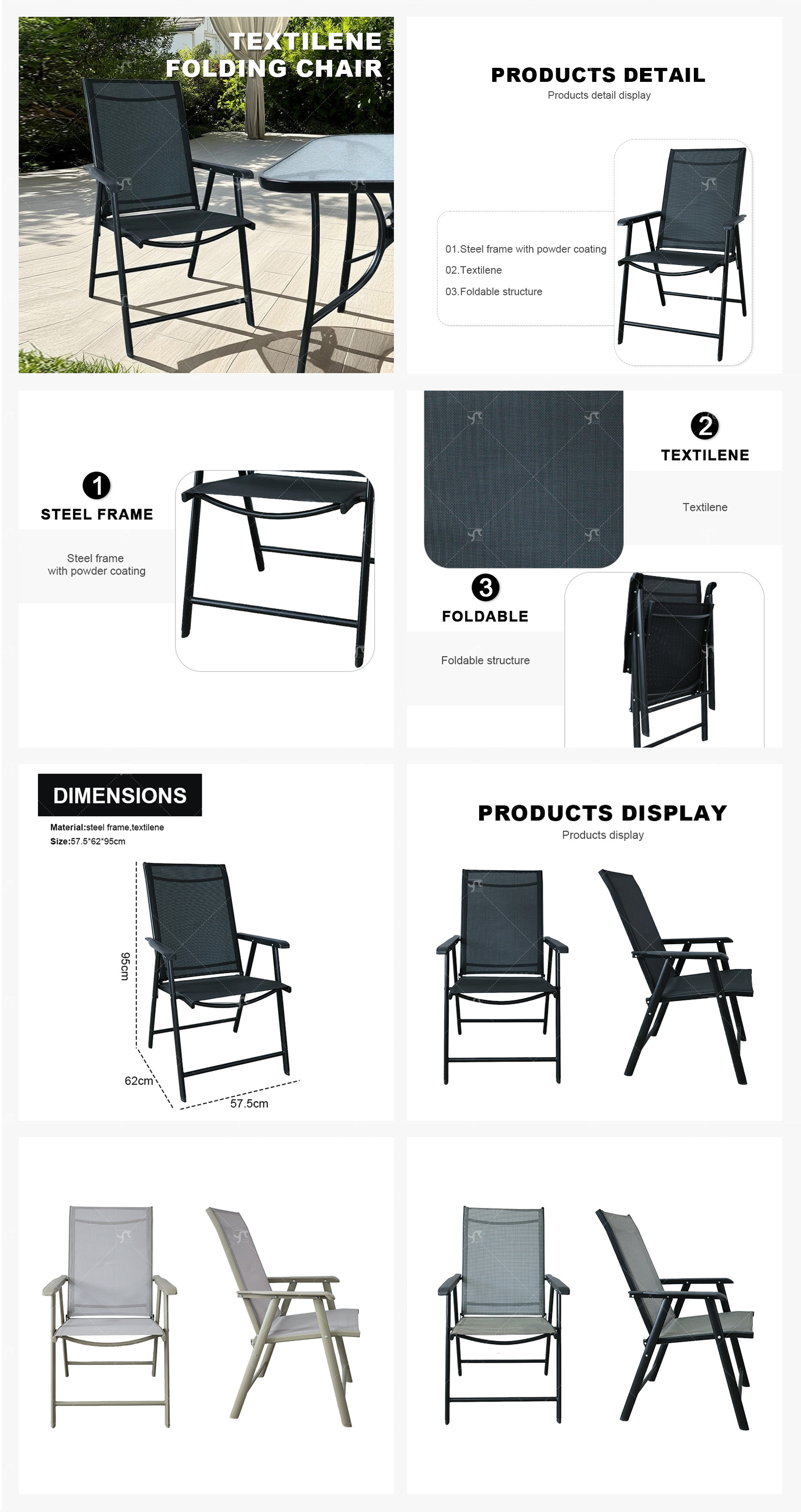 Teslin Modern Comfort Foldable Structure Metal Patio Chair with Arm Popular Outdoor Garden Chair for Park Use Fabric Design