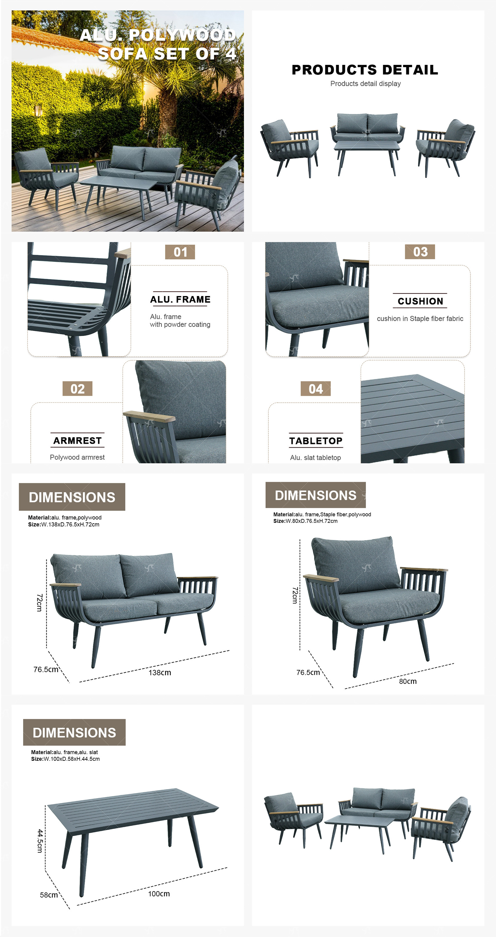 Aluminium New Modern Design Garden Furniture Outdoor Sofa Outdoor Garden Furniture Luxury Sofa Set 4 Pieces