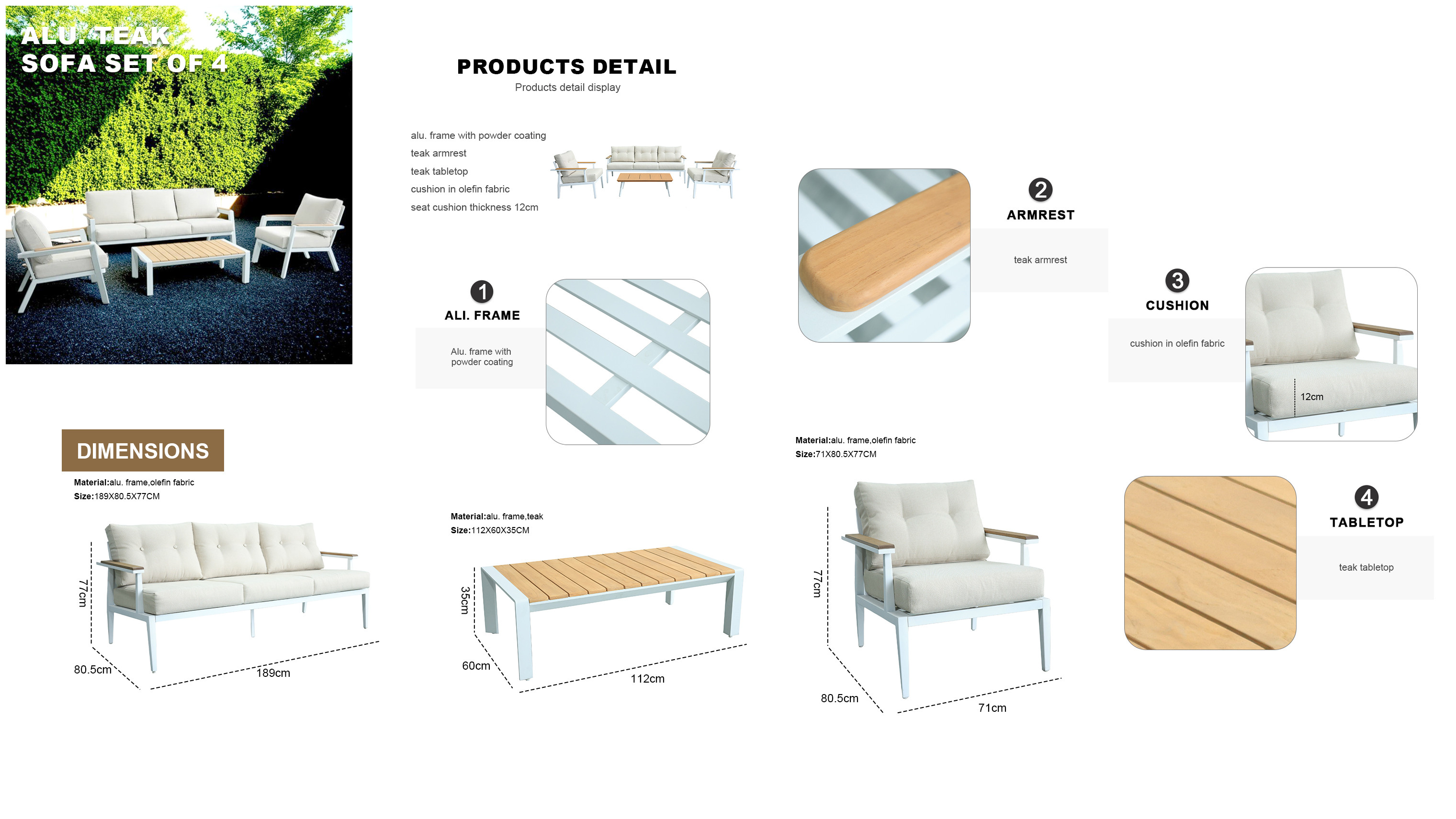 Aluminium New Modern Design Garden Furniture Outdoor Sofa Outdoor Garden Furniture Luxury Sofa Set 4 Pieces