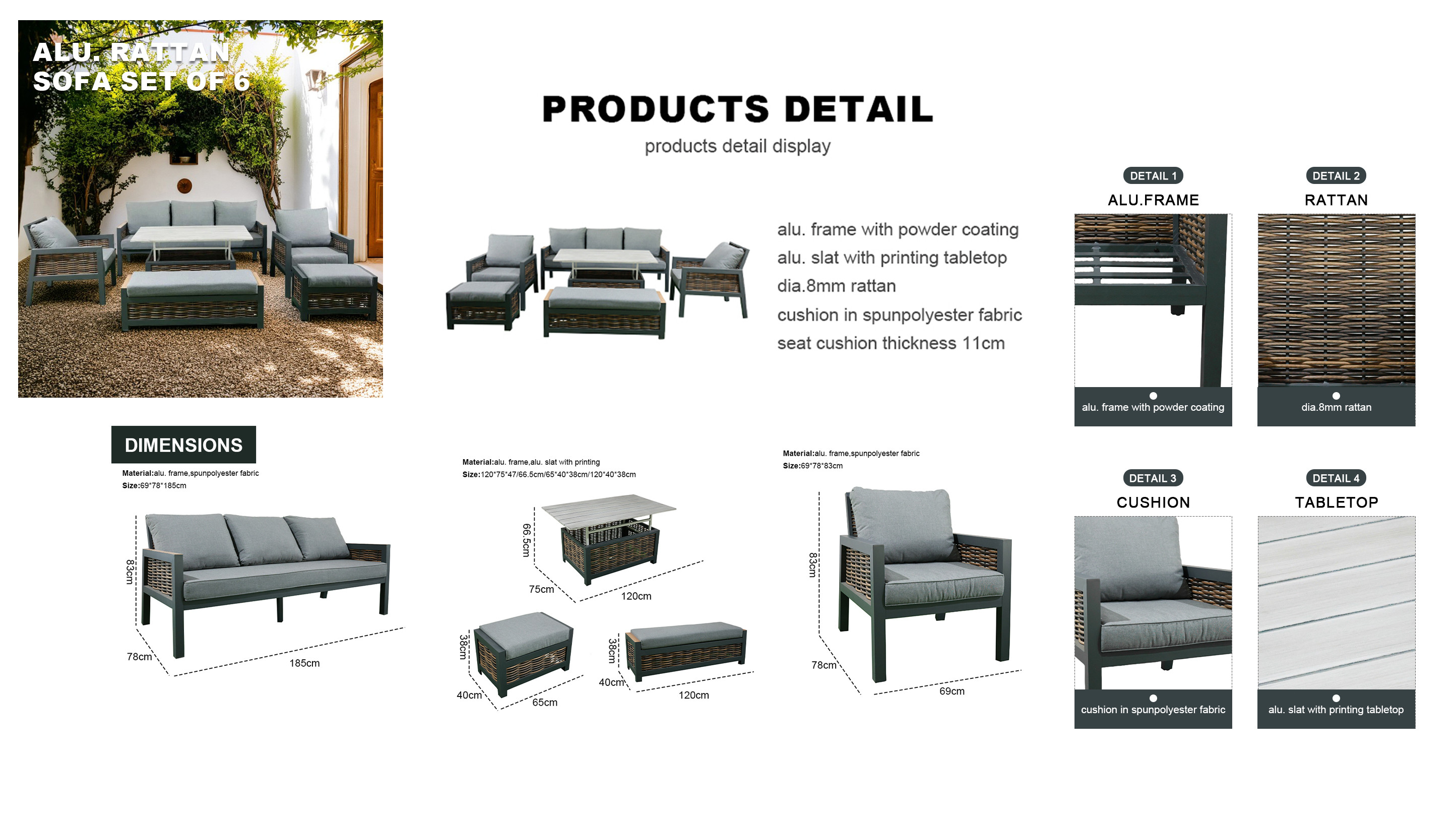 Aluminium 6-Piece Woven Rattan Sofa sets