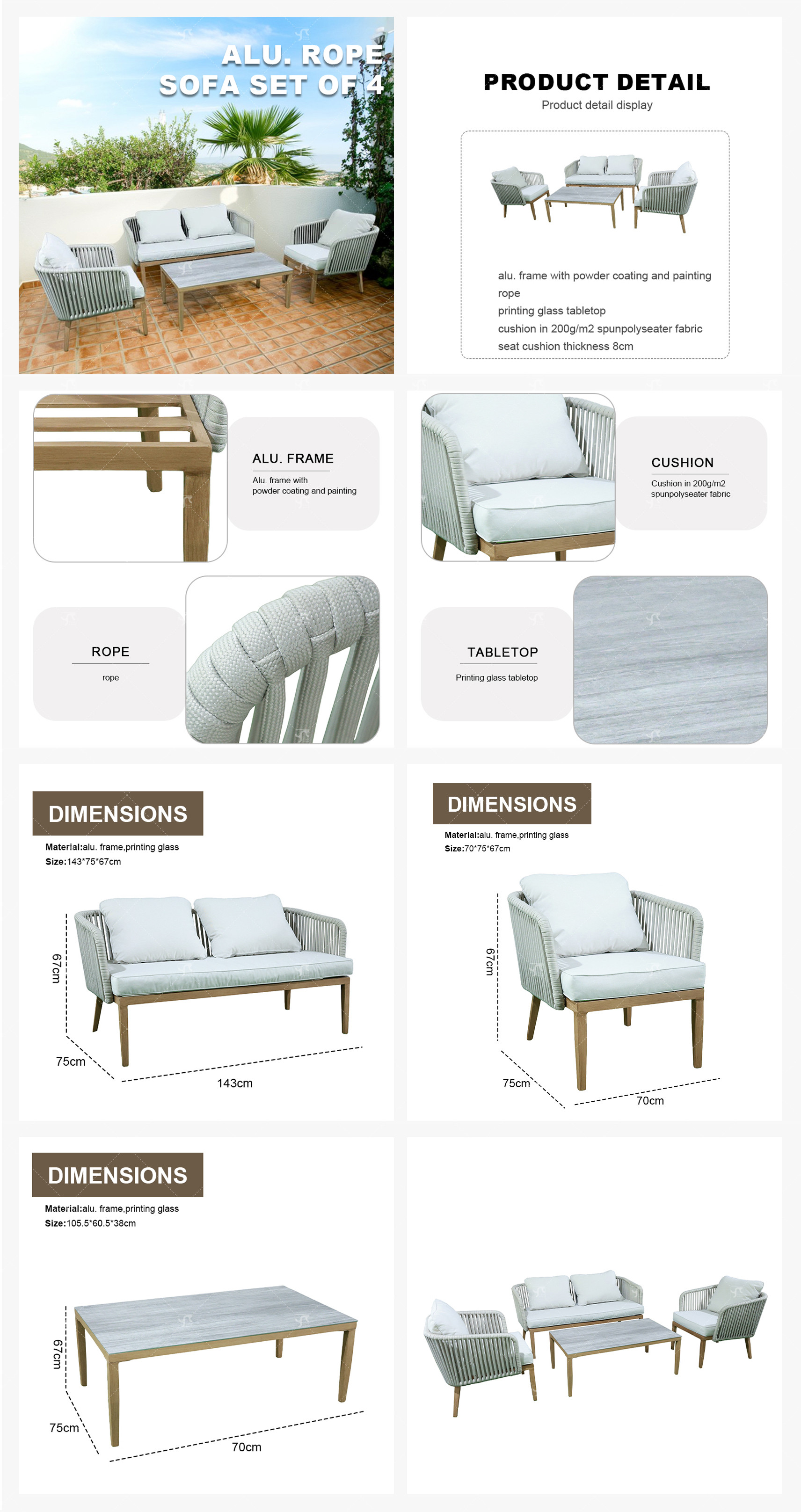 Outdoor Garden Alu. Rope Sofa Set of 4 Garden Sectional Sofa Sofa Furniture Rope Outdoor Terrace Session Set