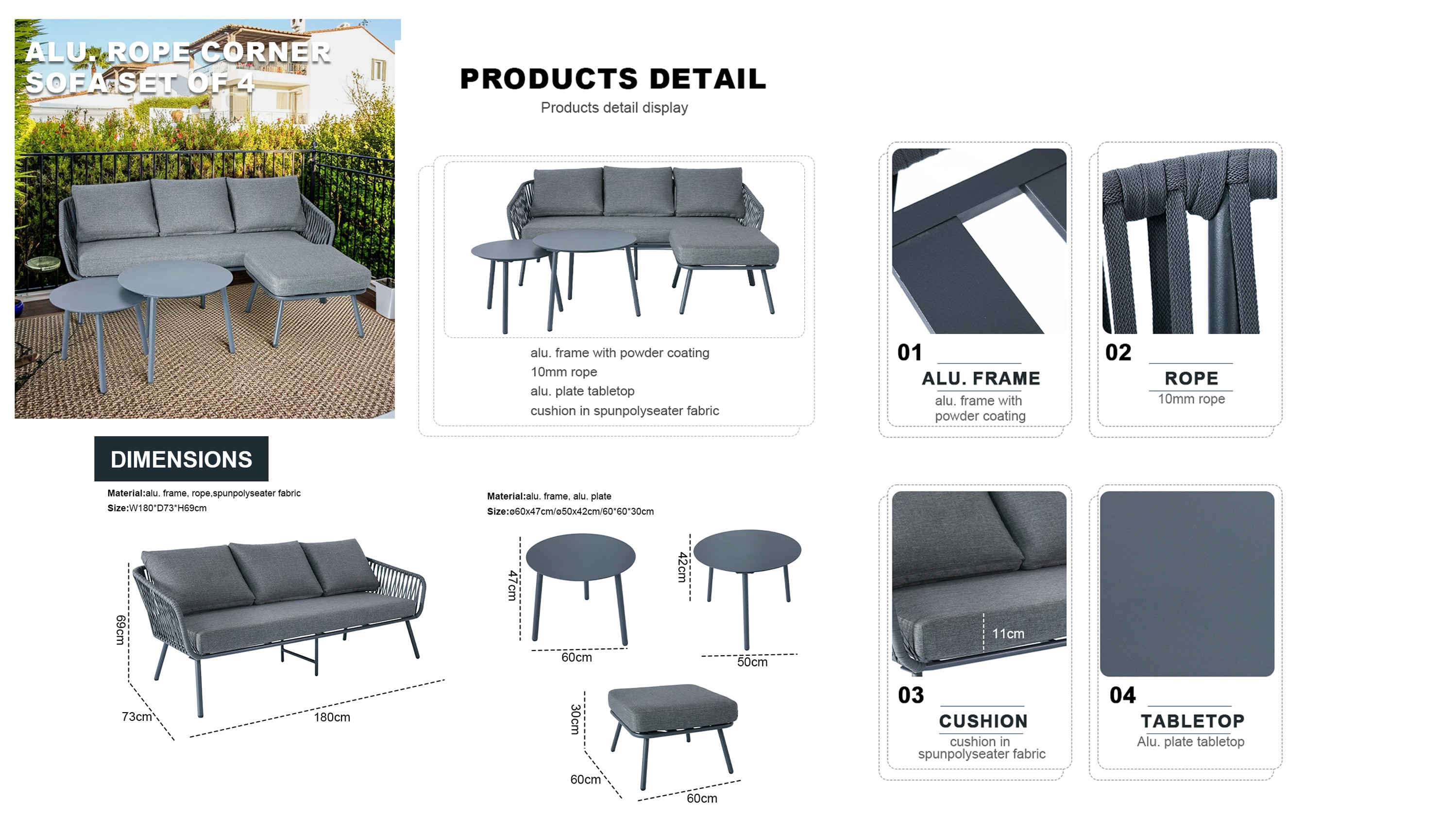 4-Piece Outdoor Aluminium Furniture Set Rope Woven Design Garden Balcony Nesting Sofa Chair Coffee Table