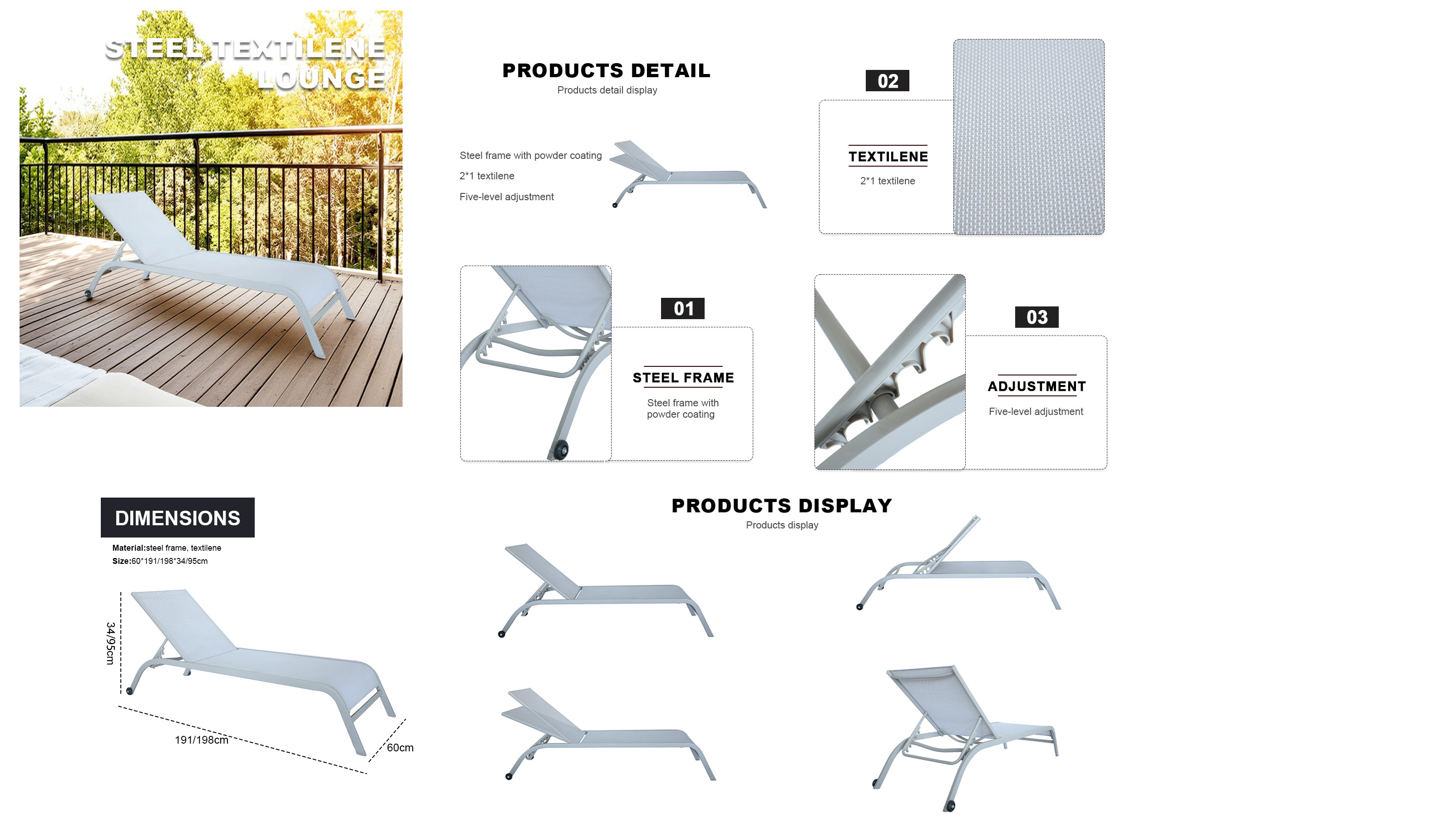 Outdoor Steel Five Position Adjustable Garden Beach Chaise Lounge Chair Patio Garden Hotel Sun Lounge