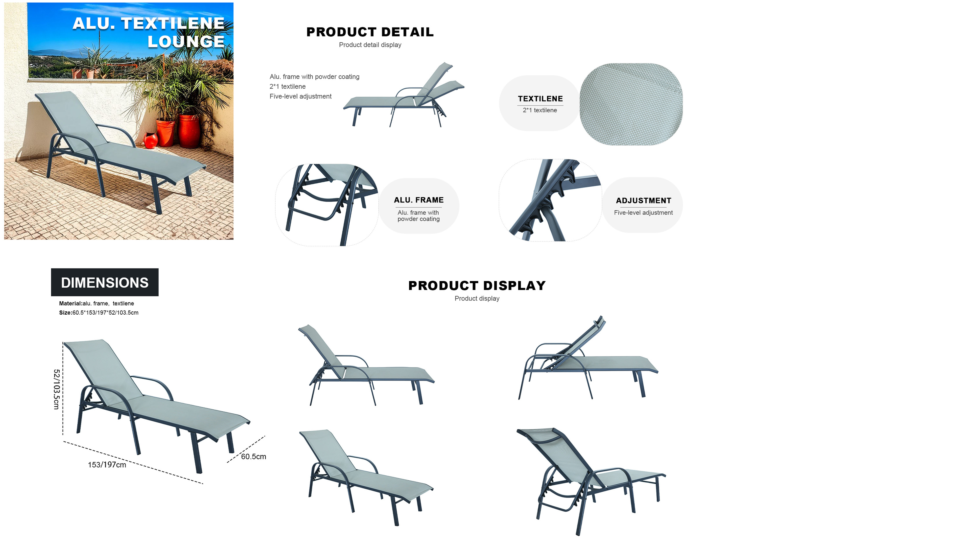 Outdoor Alu Five Position Adjustable Garden Beach Chaise Lounge Chair Patio Garden Hotel Sun Lounge