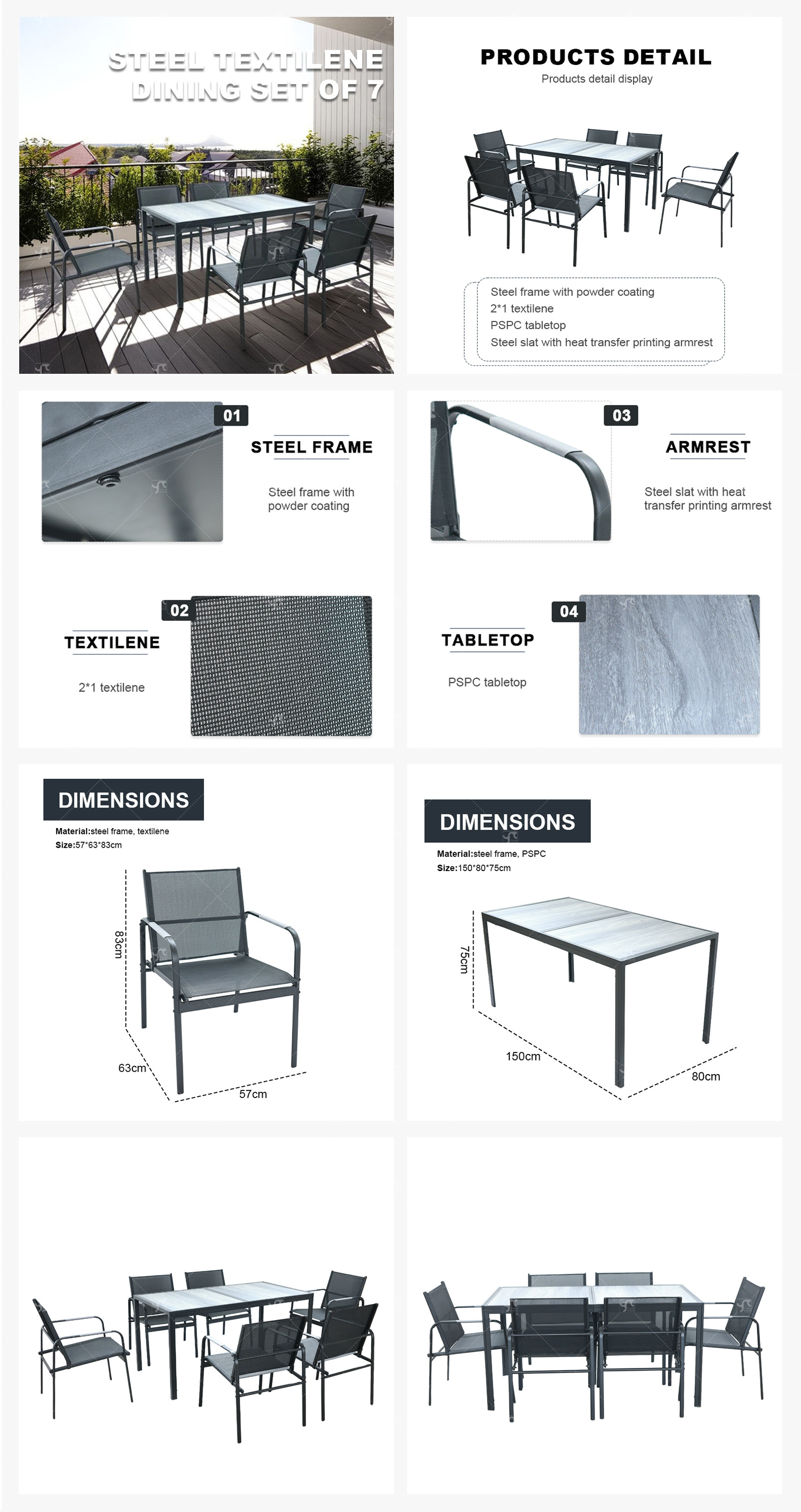 Outdoor Modern Hot Selling Good Quality Garden Furniture Dining Set of 7steel Teslin Dining Set of 7