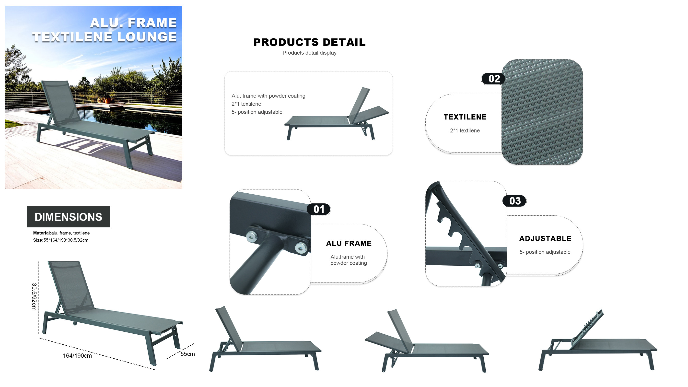 Outdoor Alu Five Position Adjustable Garden Beach Chaise Lounge Chair Patio Garden Hotel Sun Lounge