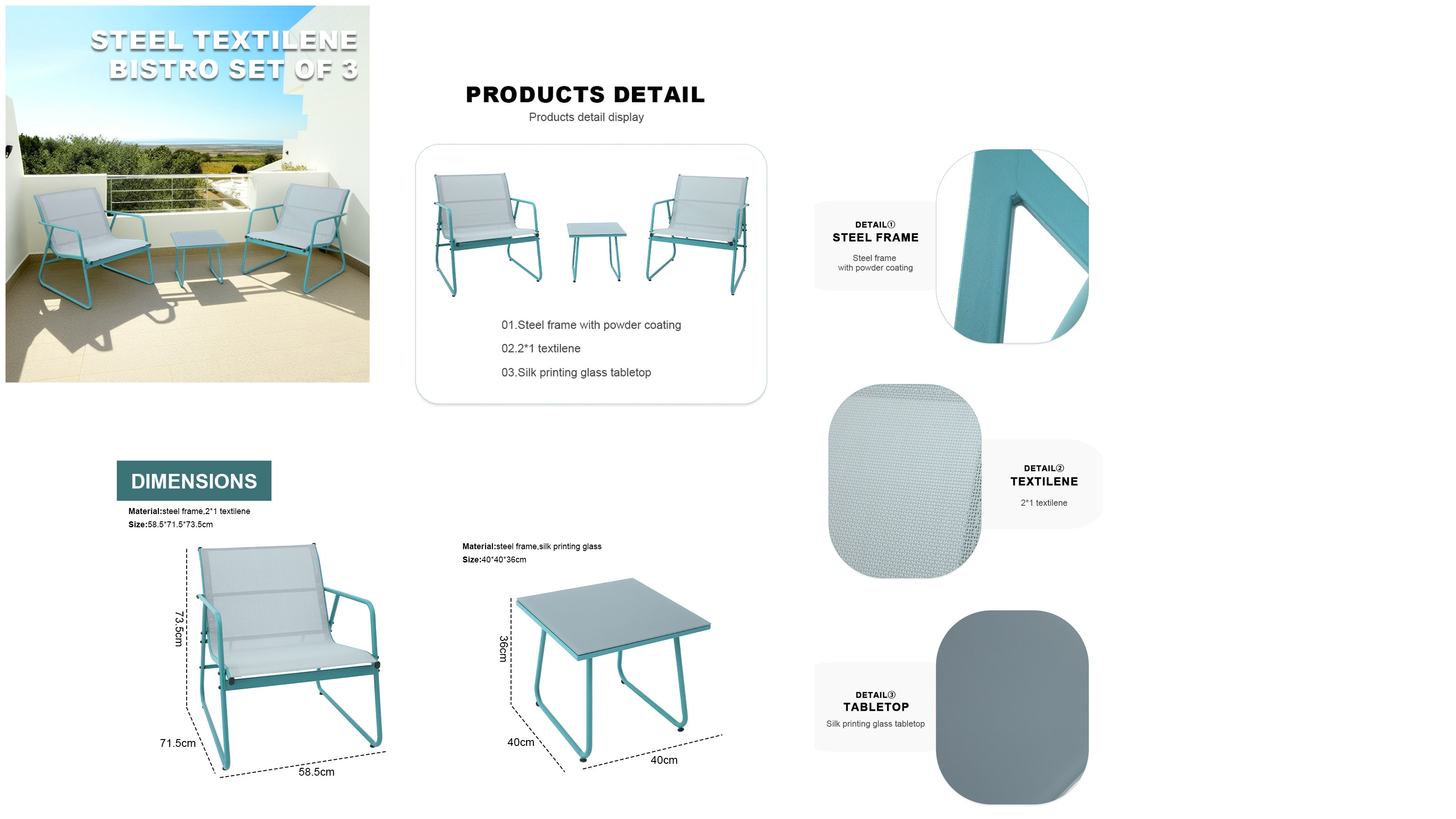 Steel Frames Powder-coated Patio Set Furniture Table Chairs-Cloudyoutdoor