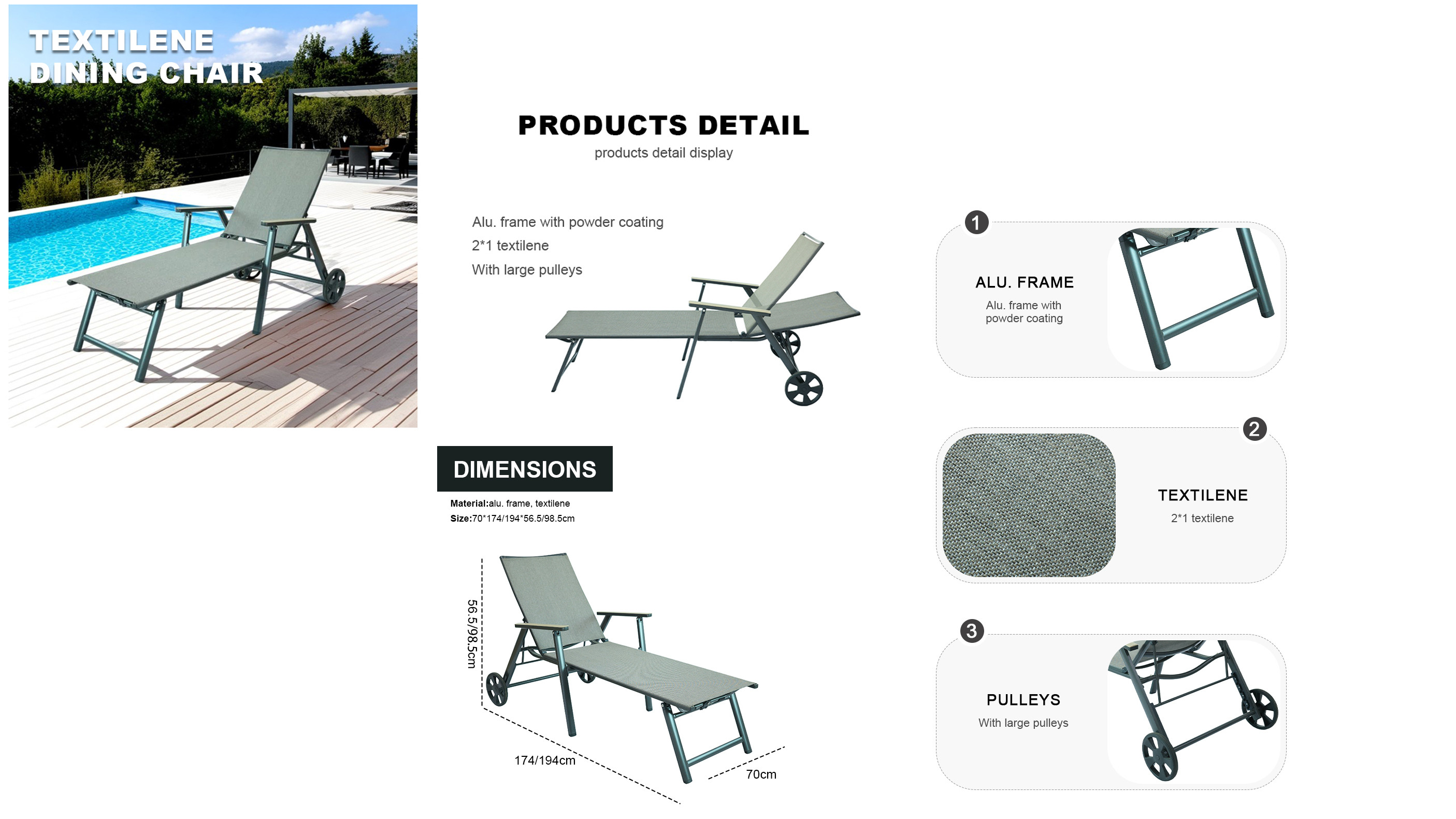Outdoor Alu Five Position Adjustable Garden Beach Chaise Lounge Chair Patio Garden Hotel Sun Lounge