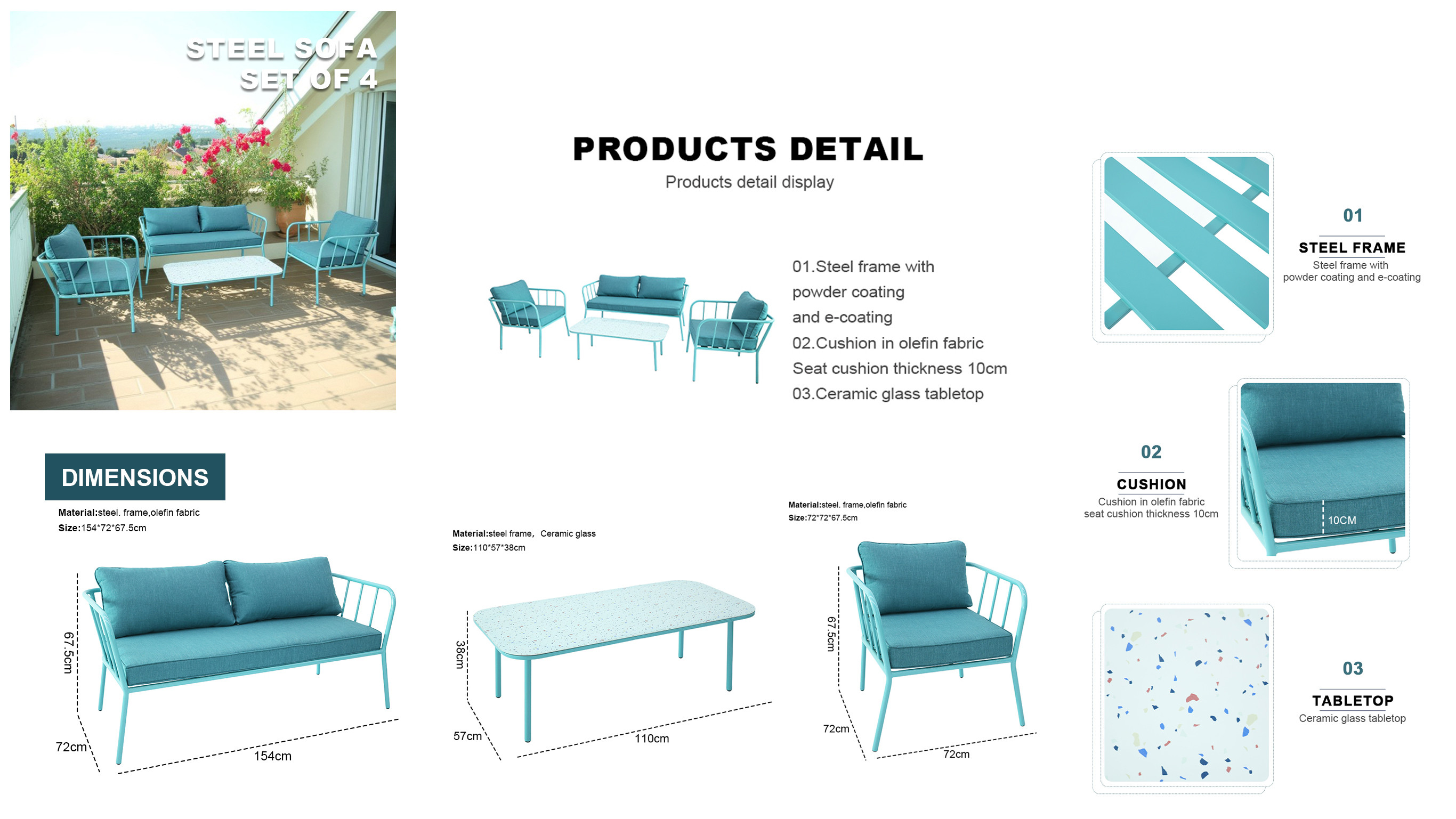 New Modern Design Garden Furniture Outdoor Sofa Outdoor Garden Furniture Luxury Sofa Set 4 Pieces