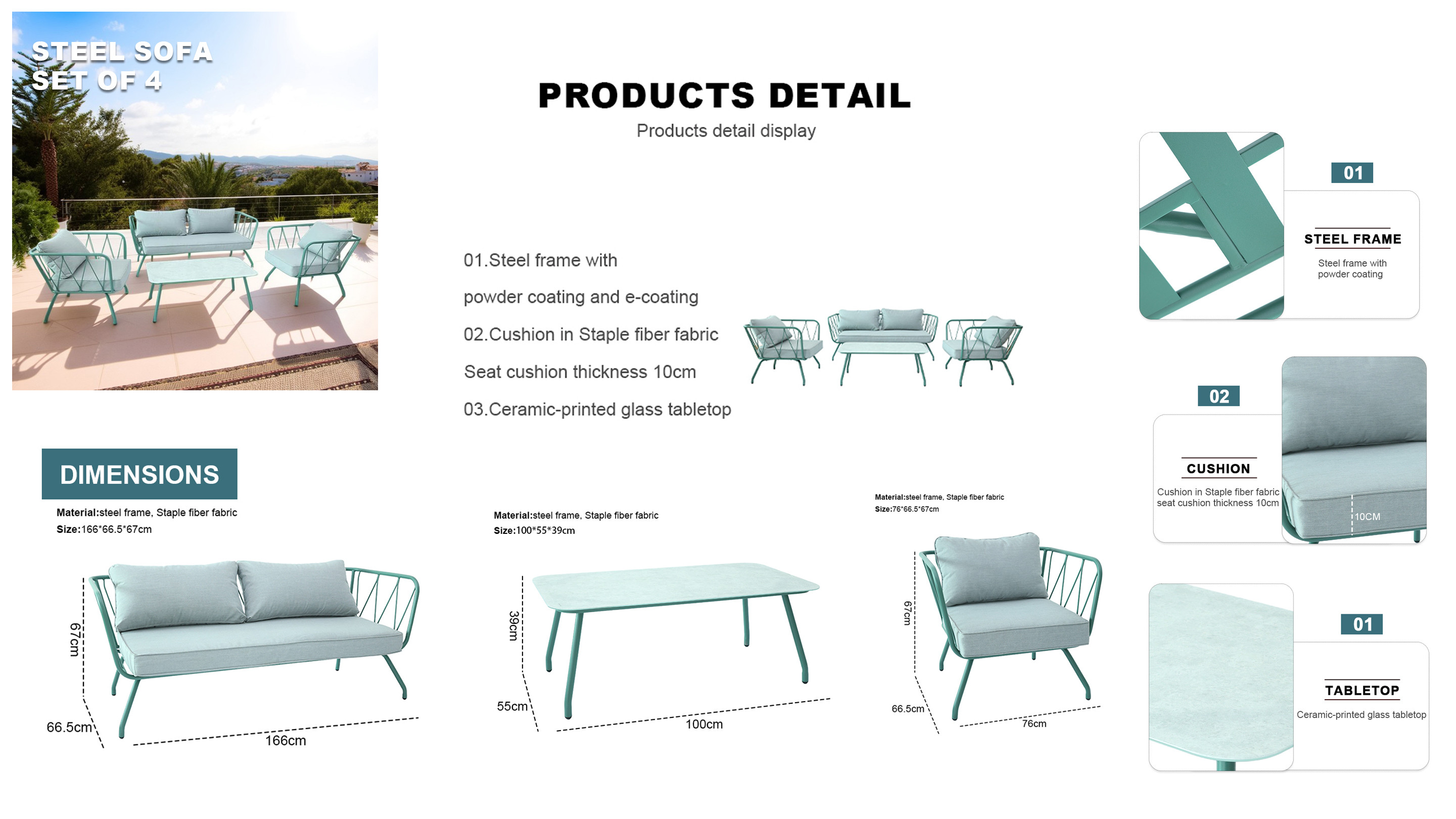 All Day Outdoor Steel 4 Seat Garden Sectional Sofa Sofa Furniture Rattan Outdoor Terrace Session Set