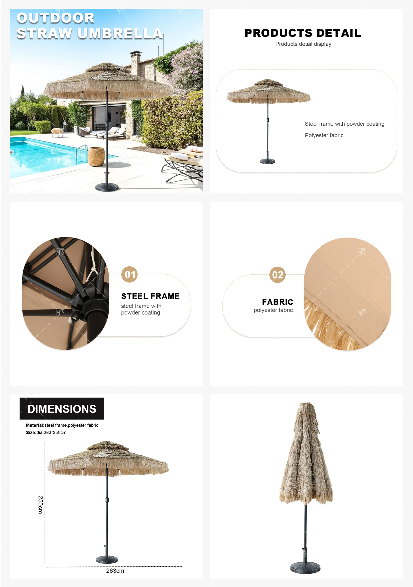 Garden Umbrella 2.5 Meter Two Layer Synthetic Thatch Roof Outdoor with Thatch Grass Beach Thatched Umbrella