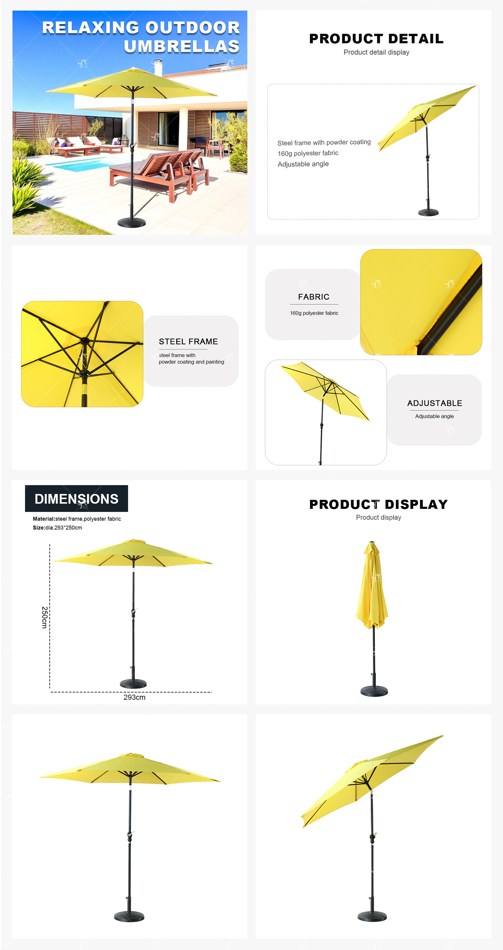 Swimming Pool Parasol Outdoor Furniture Patio Restaurant Umbrella for Garden Balcony Umbrella Polvester Sunsade with Tilt