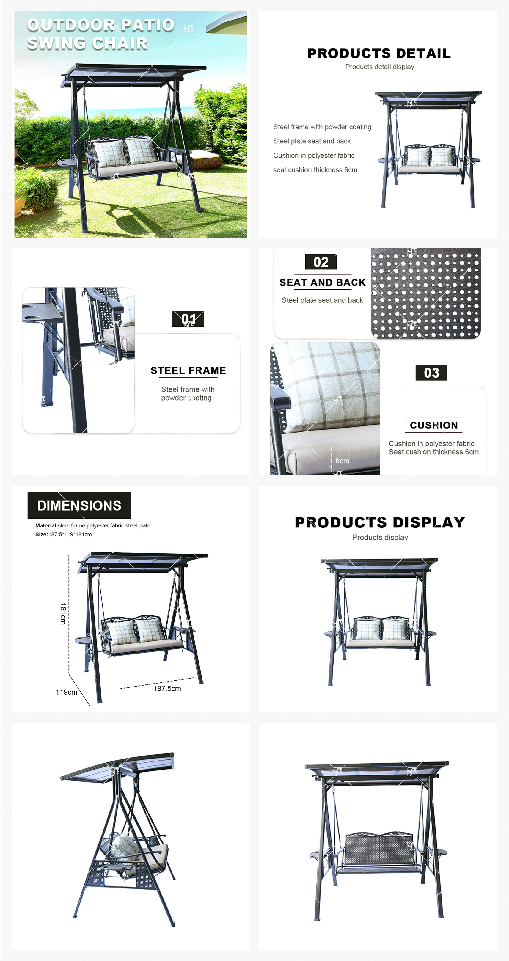 Hot Selling Balcony Outdoor Patio Garden Metal Streel Seat Swing Chair-Cloudyoutdoor