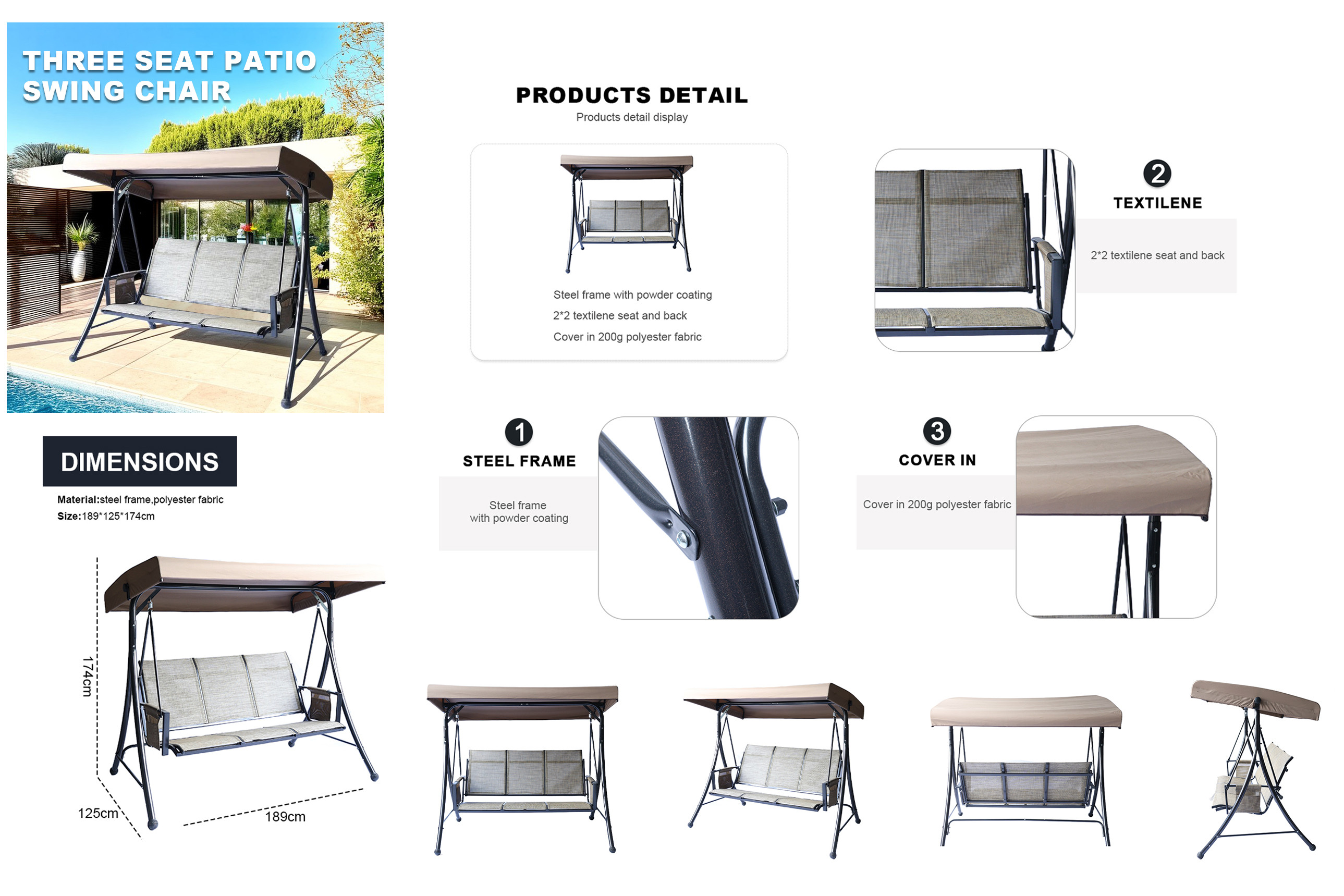 Hot Sale Outdoor 3 Seats Teslin Garden Swing Chair for Balcony-Cloudyoutdoor