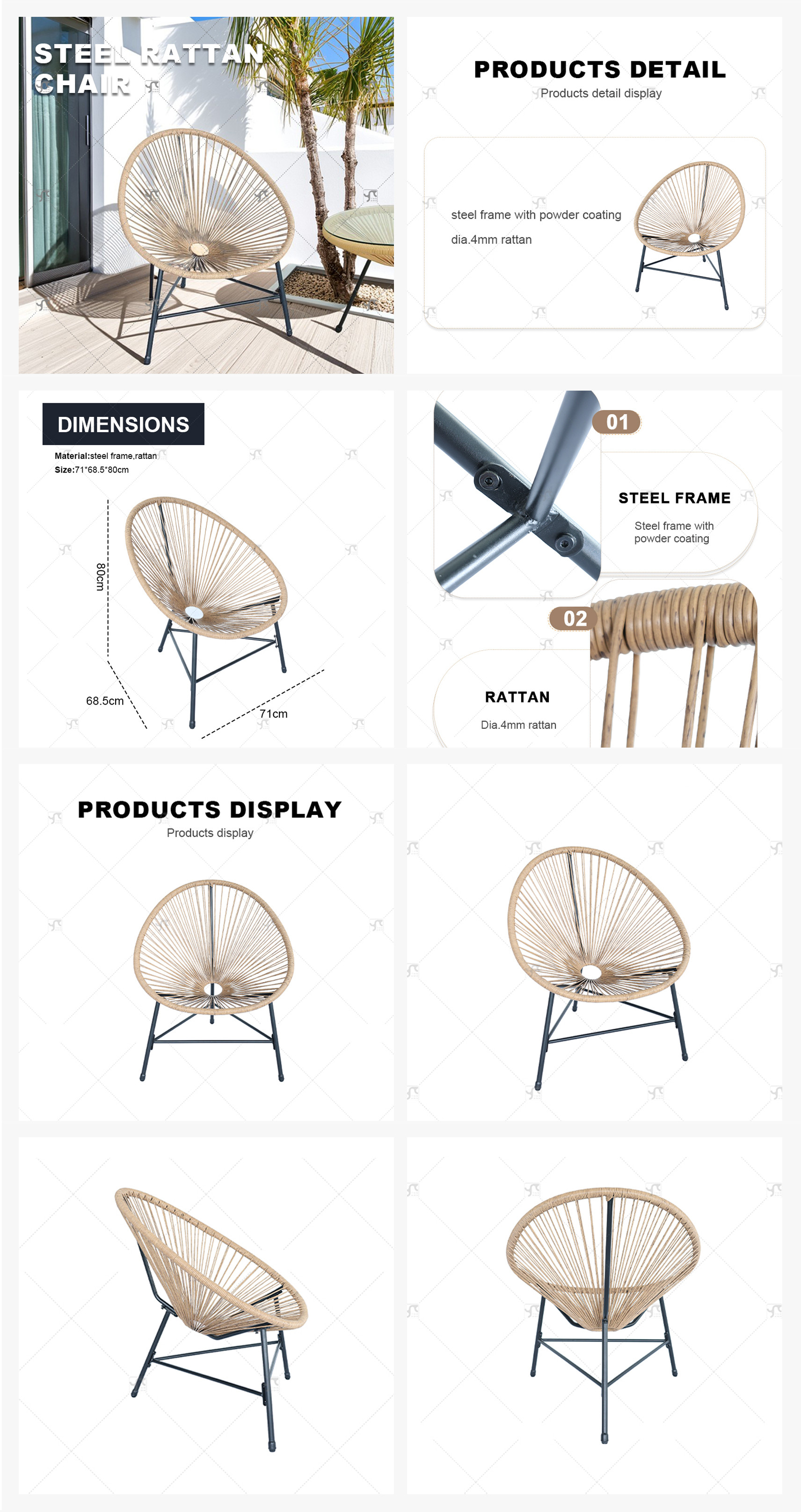 Modern Style Outdoor Garden Steel Rattan Egg Chair Popular Colorful Vine and Willow Rattan for Cafe Bar for Park Use