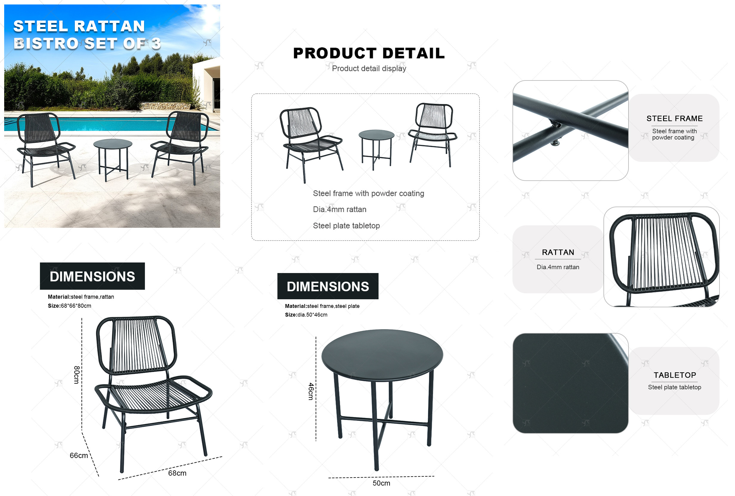 Steel Pipe Rattan Weaving Casual Three-piece Set with Sofa Chair Outdoor Garden Leisure Rattan Furniture Set