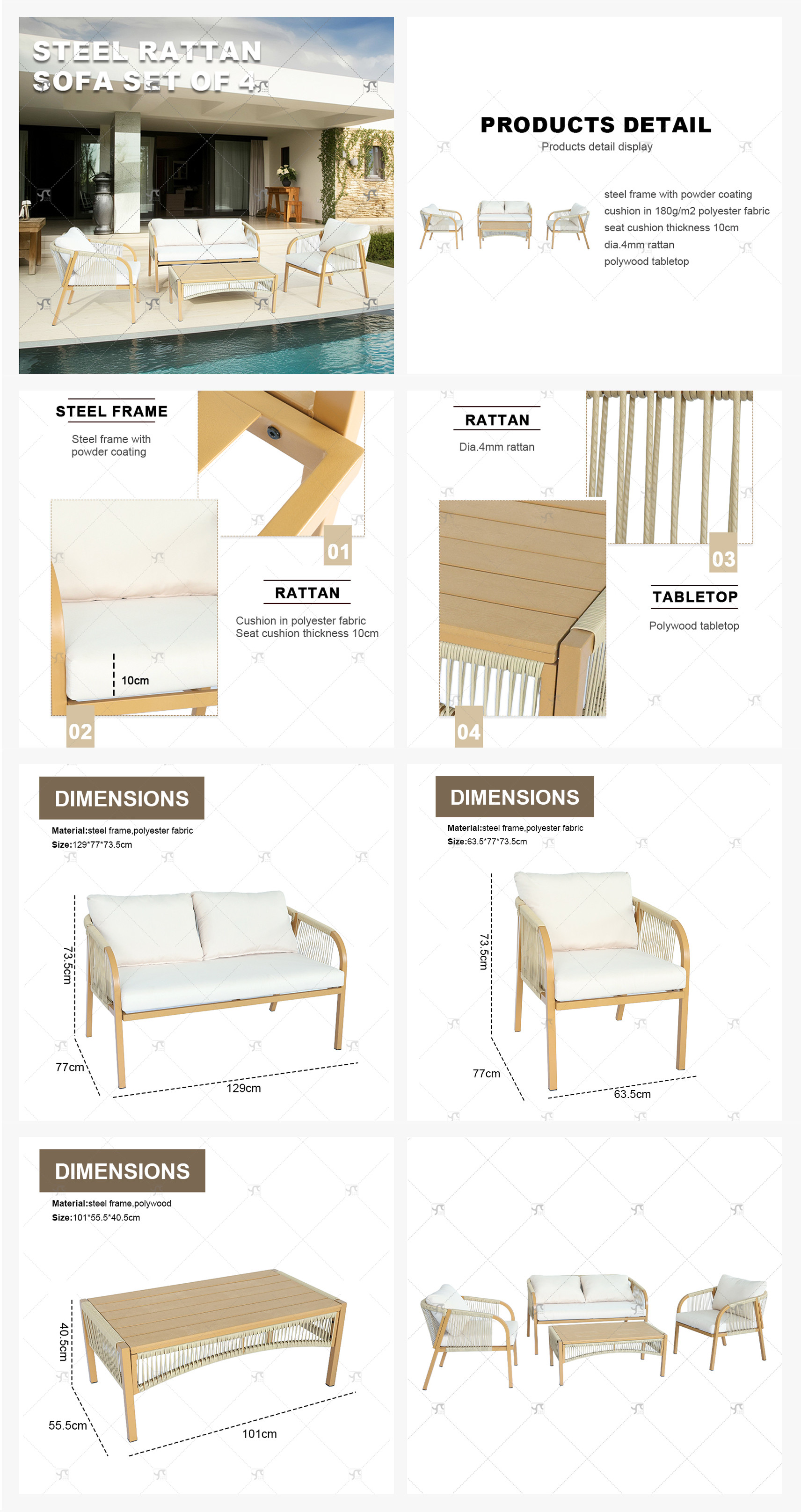 2x1 Teslin Popular Garden 4 Pieces Sofa Set Patio Sofa Sets Furniture Outdoor Furniture Outdoor Patio Furniture Sofa Set