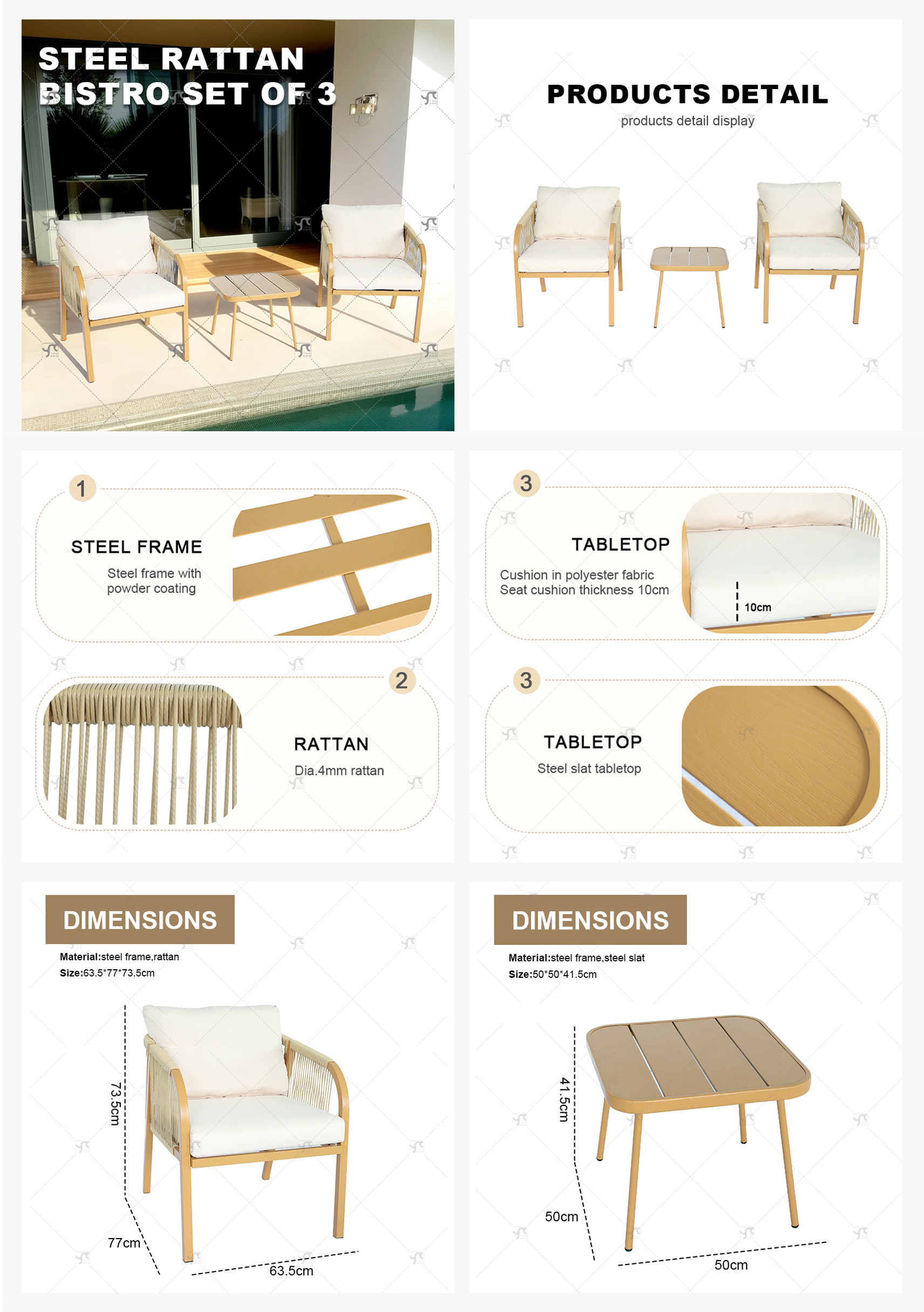 Steel Rattan Bistro Set of 3