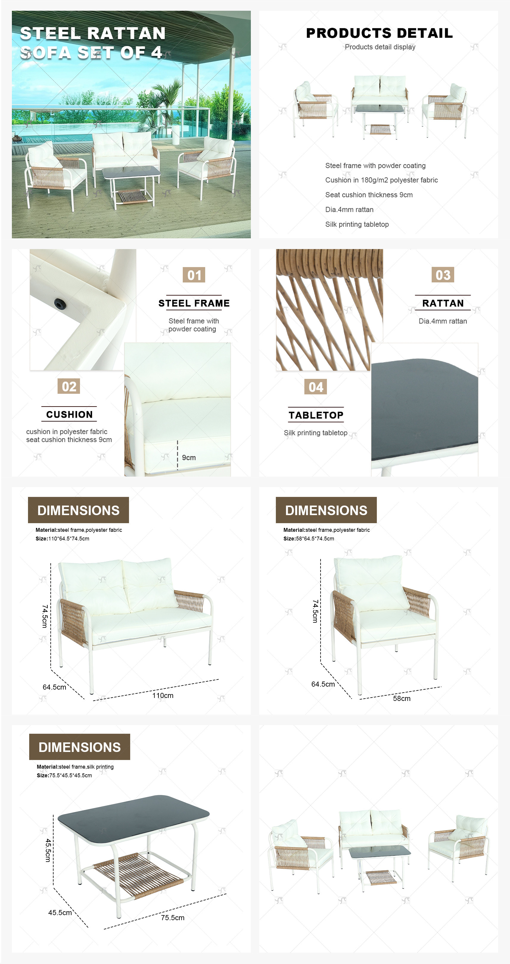 All Day Outdoor Aluminium 4 Seat Garden Sectional Sofa Sofa Furniture Rattan Outdoor Terrace Session Set