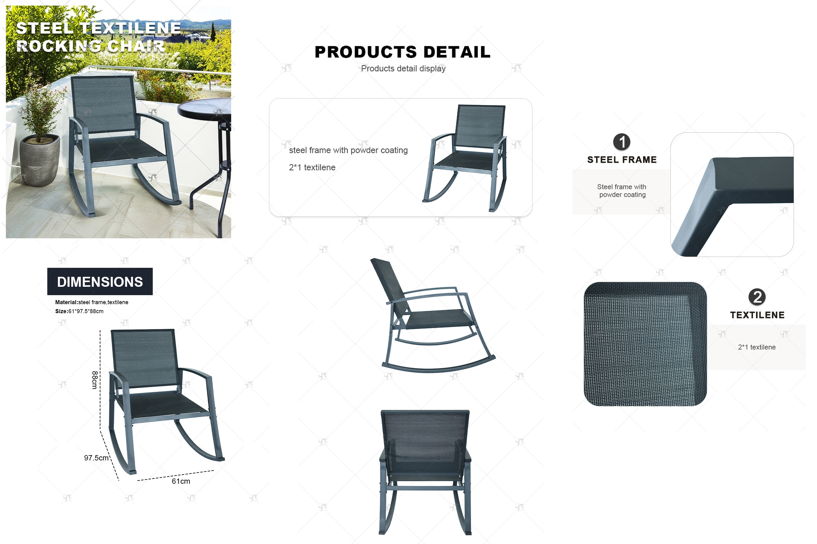Modern Design Outdoor Rocking Chair Steel Metal Frame Swimming Pool Patio Garden Park Bedroom Restaurants Villas Durable Fabric