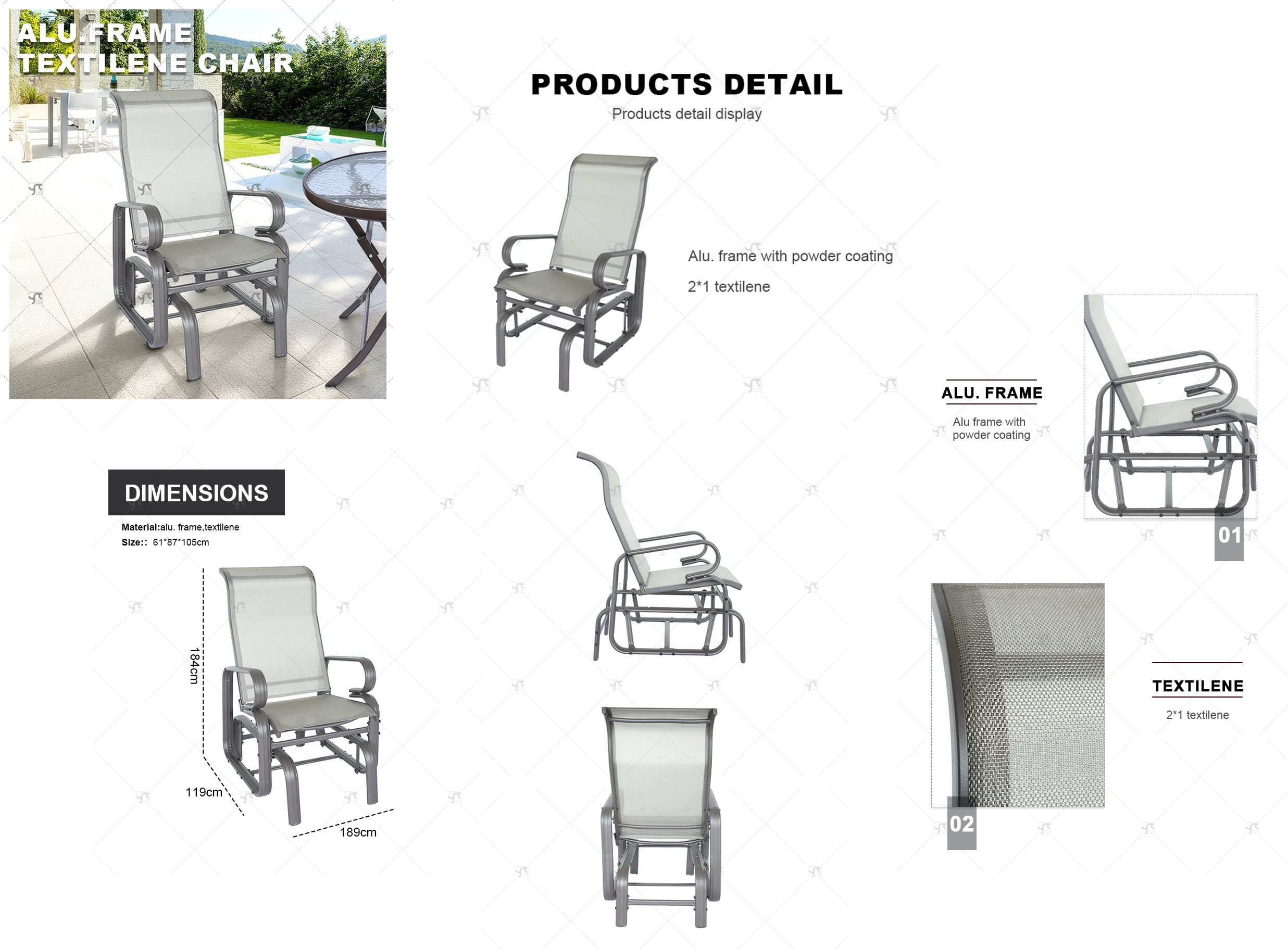 2x1 Teslin Modern Comfort Flex Metal Patio Chair with Arm Popular Outdoor Garden Chair for Park Use Teslin Design