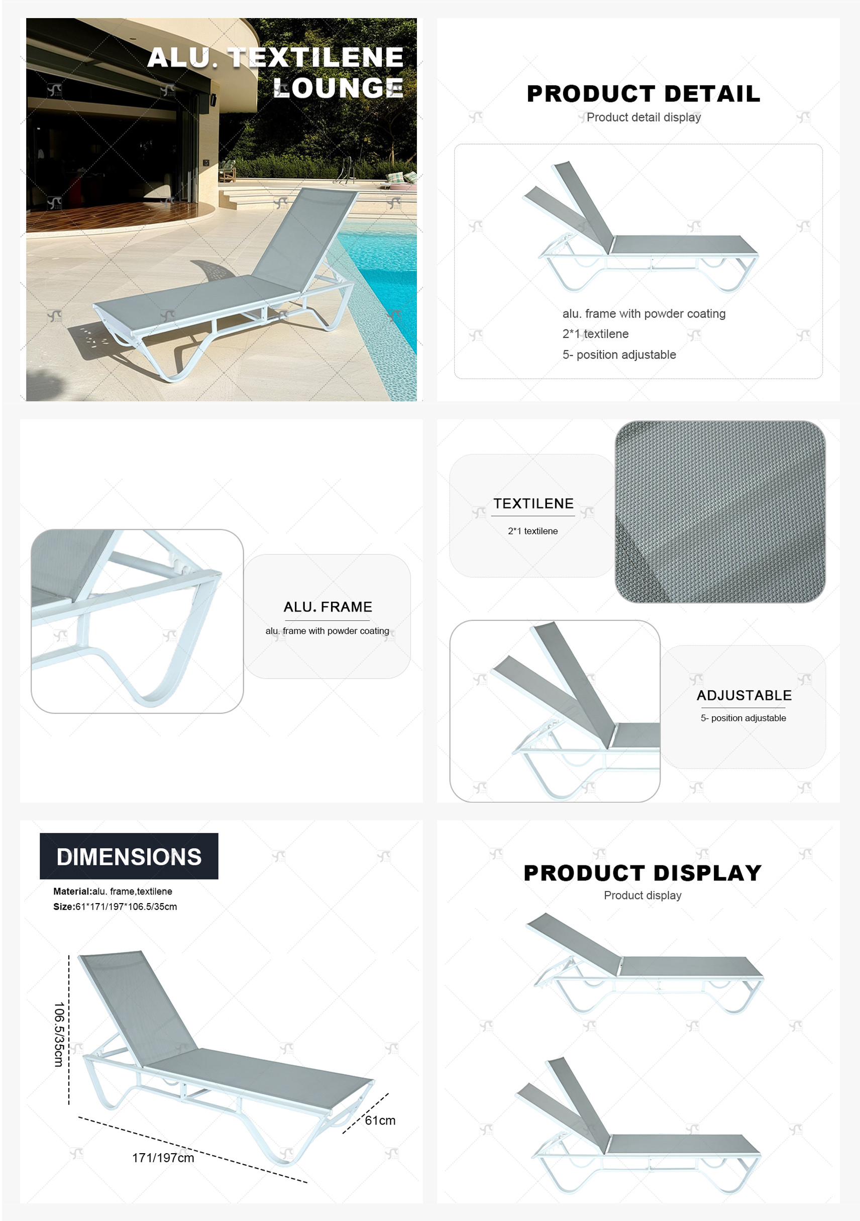 Outdoor Alu Five Position Adjustable Garden Beach Chaise Lounge Chair Patio Garden Hotel Sun Lounge