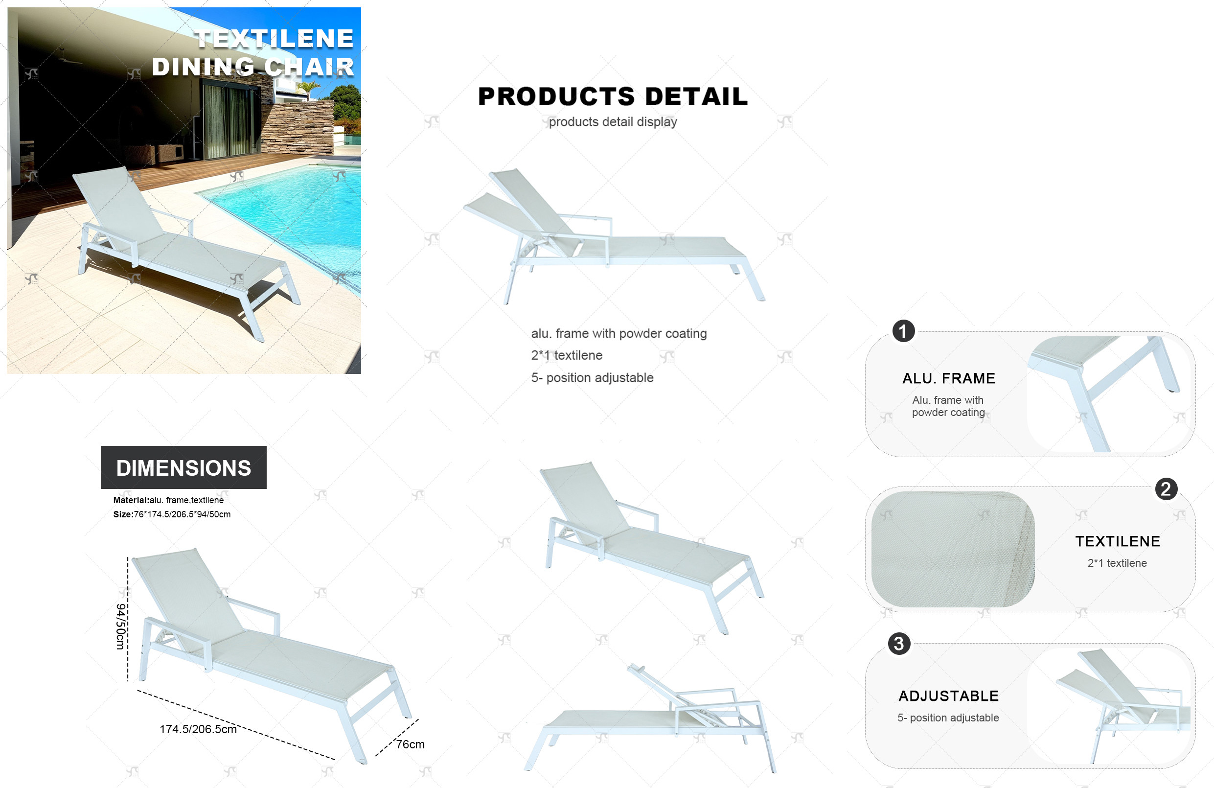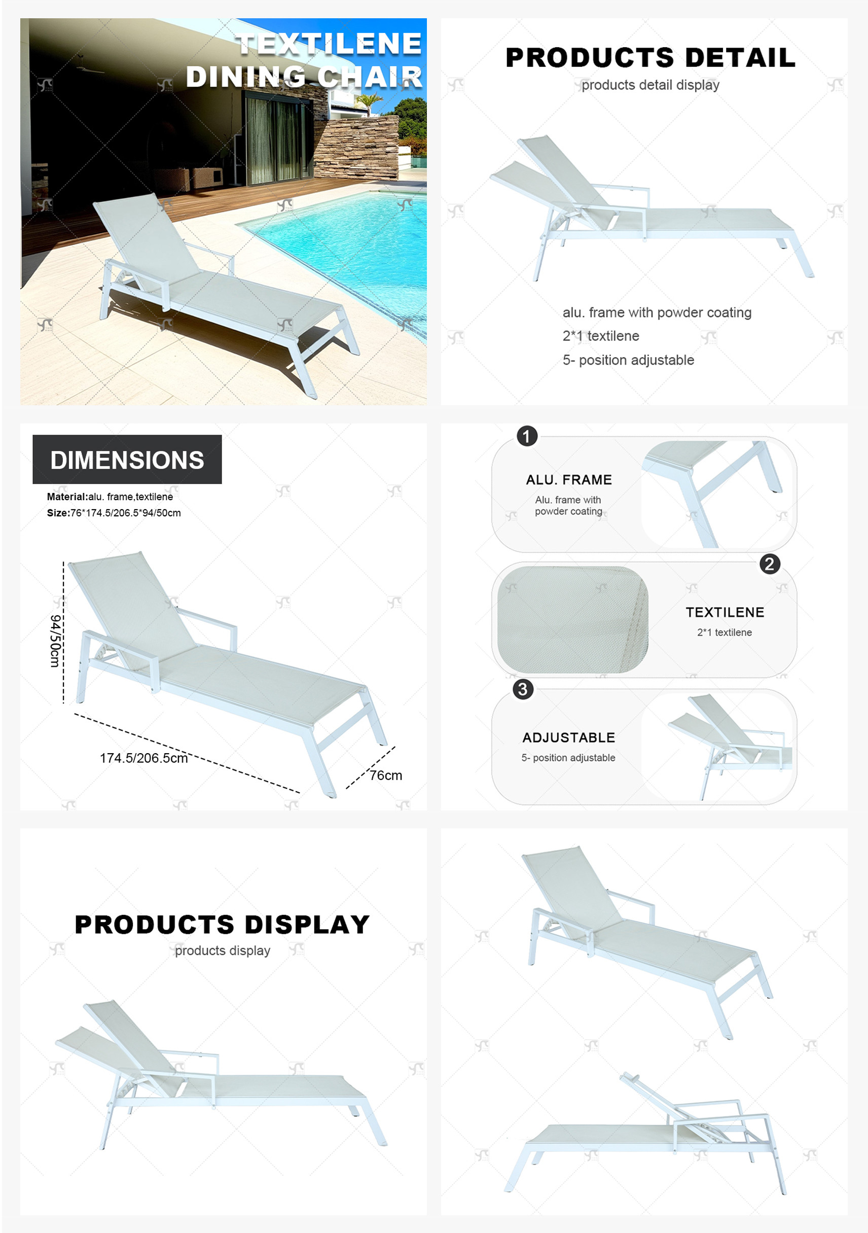 Outdoor Alu Five Position Adjustable Garden Beach Chaise Lounge Chair Patio Garden Hotel Sun Lounge