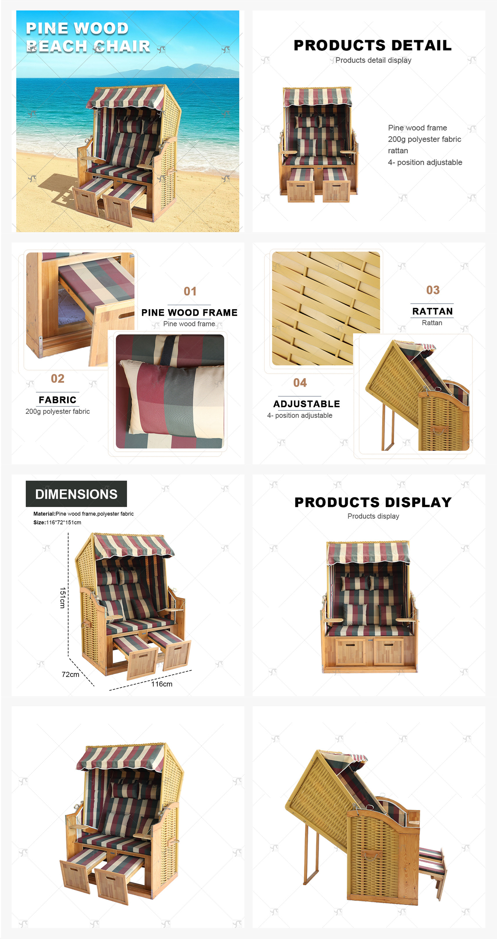 Pine Wood Frame Outdoor Wooden Furniture Roofed Chair Fashionable Sun Lounger Chair With Canopy Luxury Garden Beach Chair