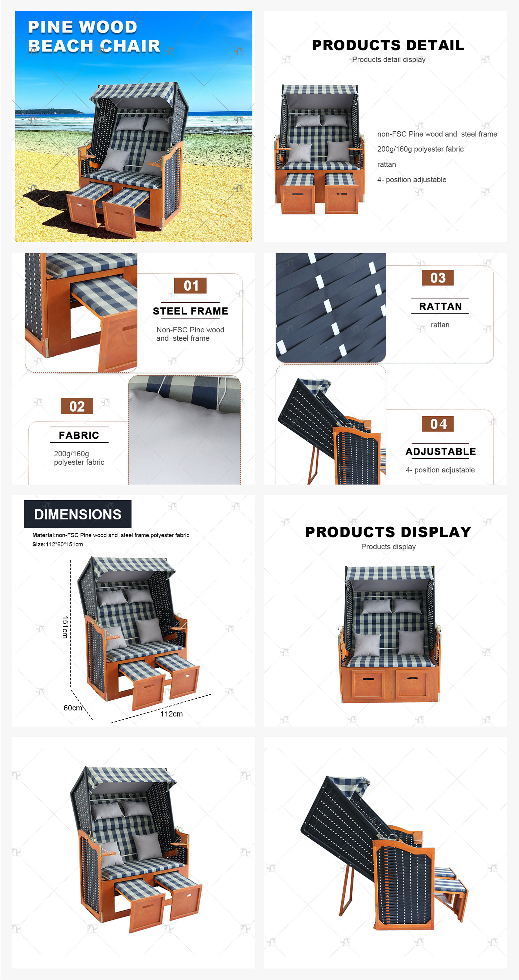 Pine Wood Frame Outdoor Wooden Furniture Roofed Chair Fashionable Sun Lounger Chair With Canopy Luxury Garden Beach Chair