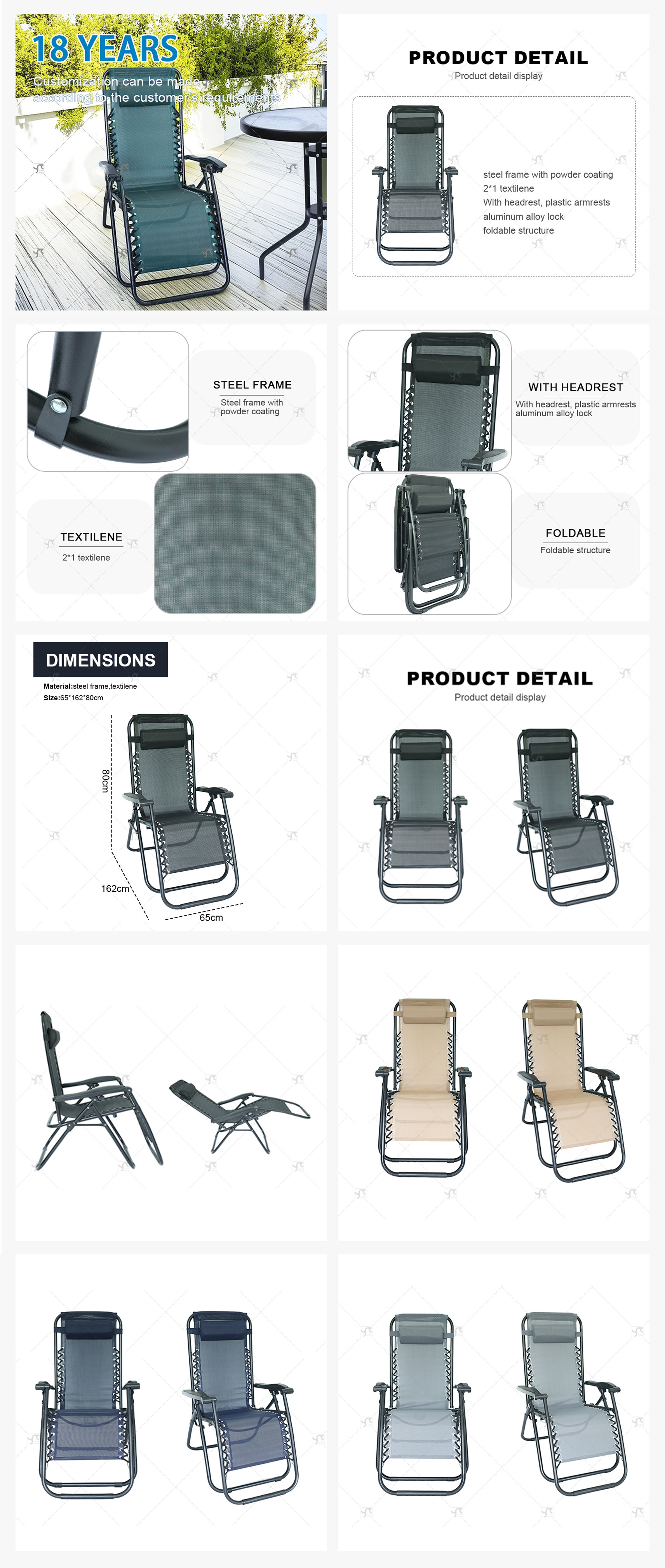 Outdoor Portable Folding Bed Chaise Sun Lounger Beach Chair Furniture Adjustable Zero Gravity Folding Recliner with Pillow
