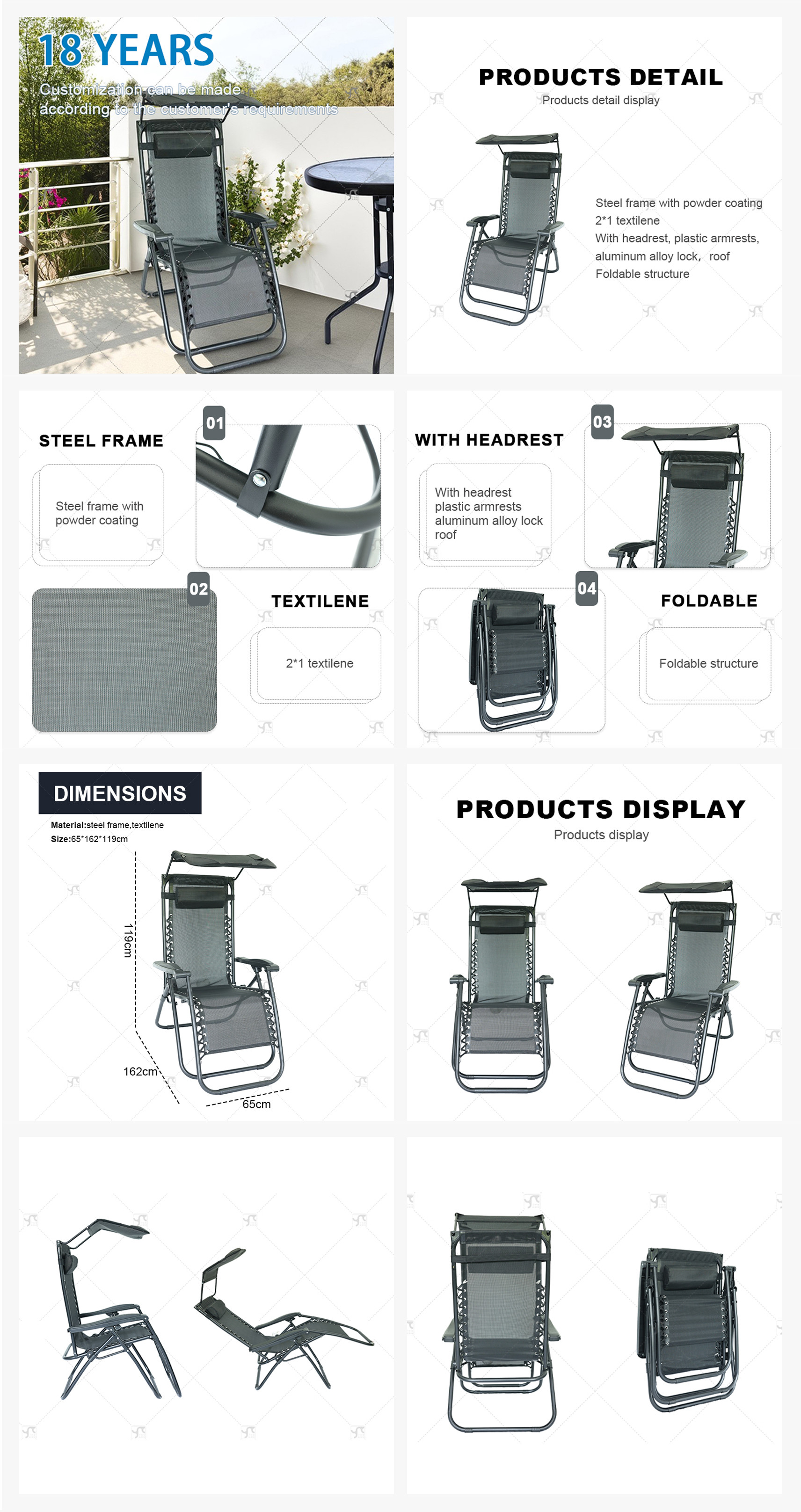 Outdoor Folding Adjustable Zero Gravity Recliner Chair Camping Travel Beach Pool Sunshade Tanning Lounger Chair with Canopy