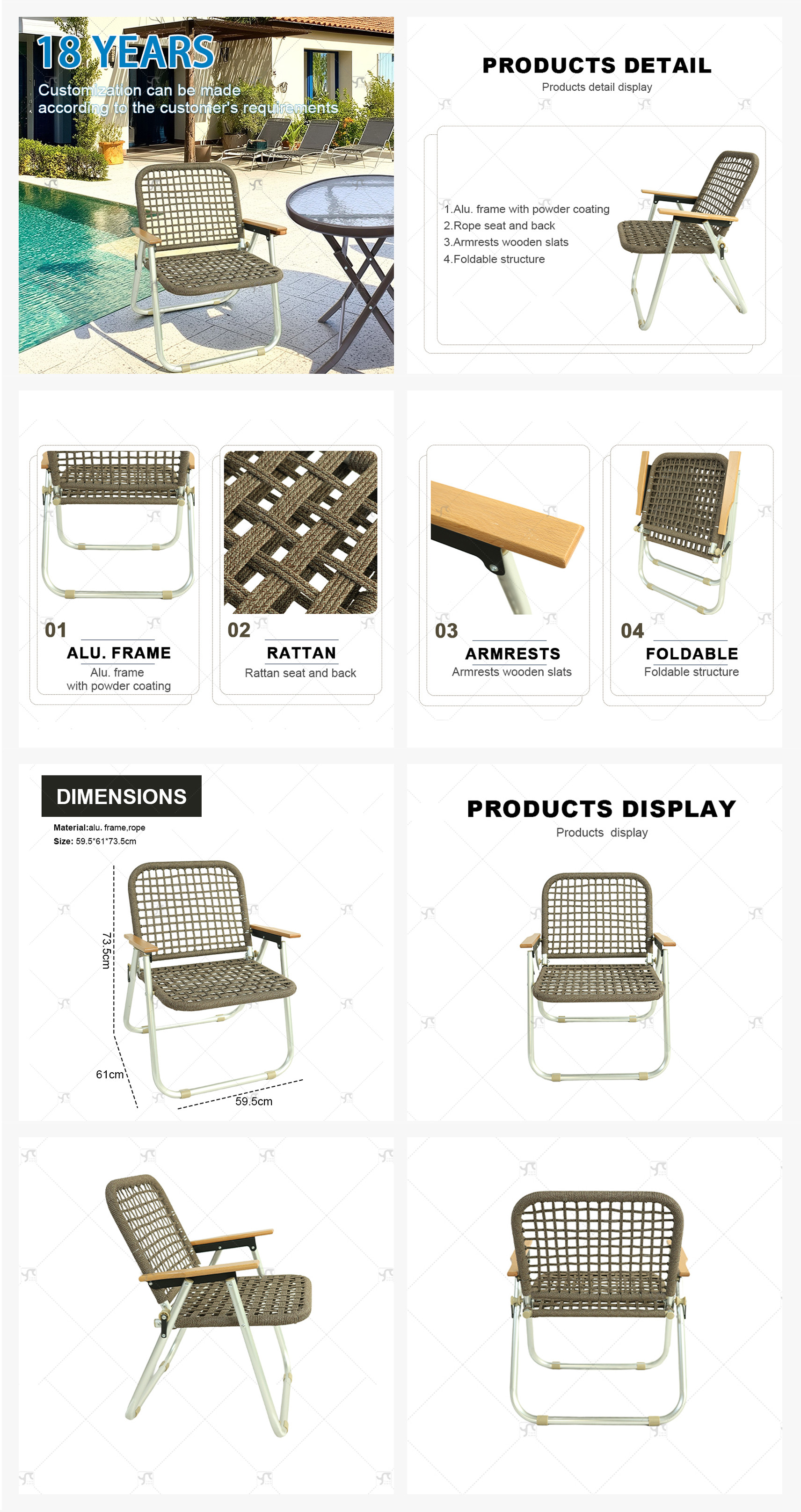 Outdoor Rattan Folding square Chair Patio Outdoor Aluminum Rattan Chair Balcony Portable Single Camping Coffee Kermit Chair