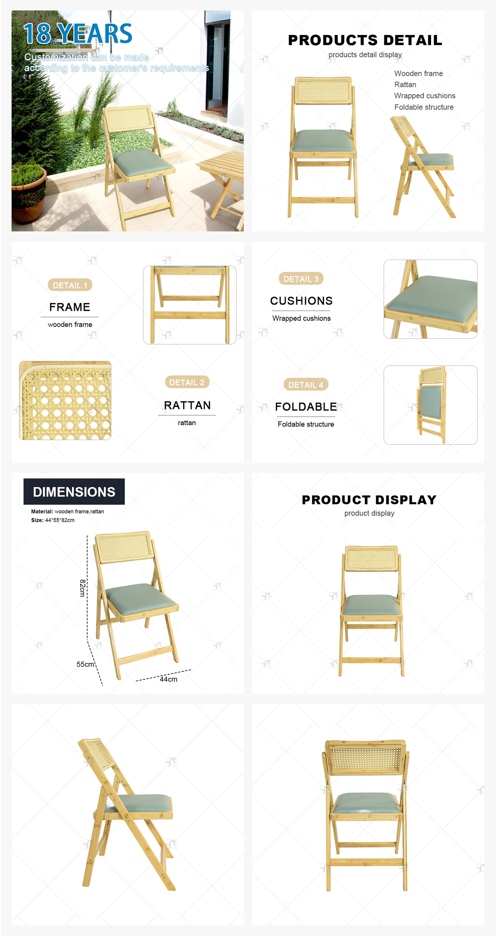 Indoor/Outdoor Rattan Folding Chair with Cotton Cushion Seat and Backrest Style Seating for Retro Camp Garden Outdoor for Events
