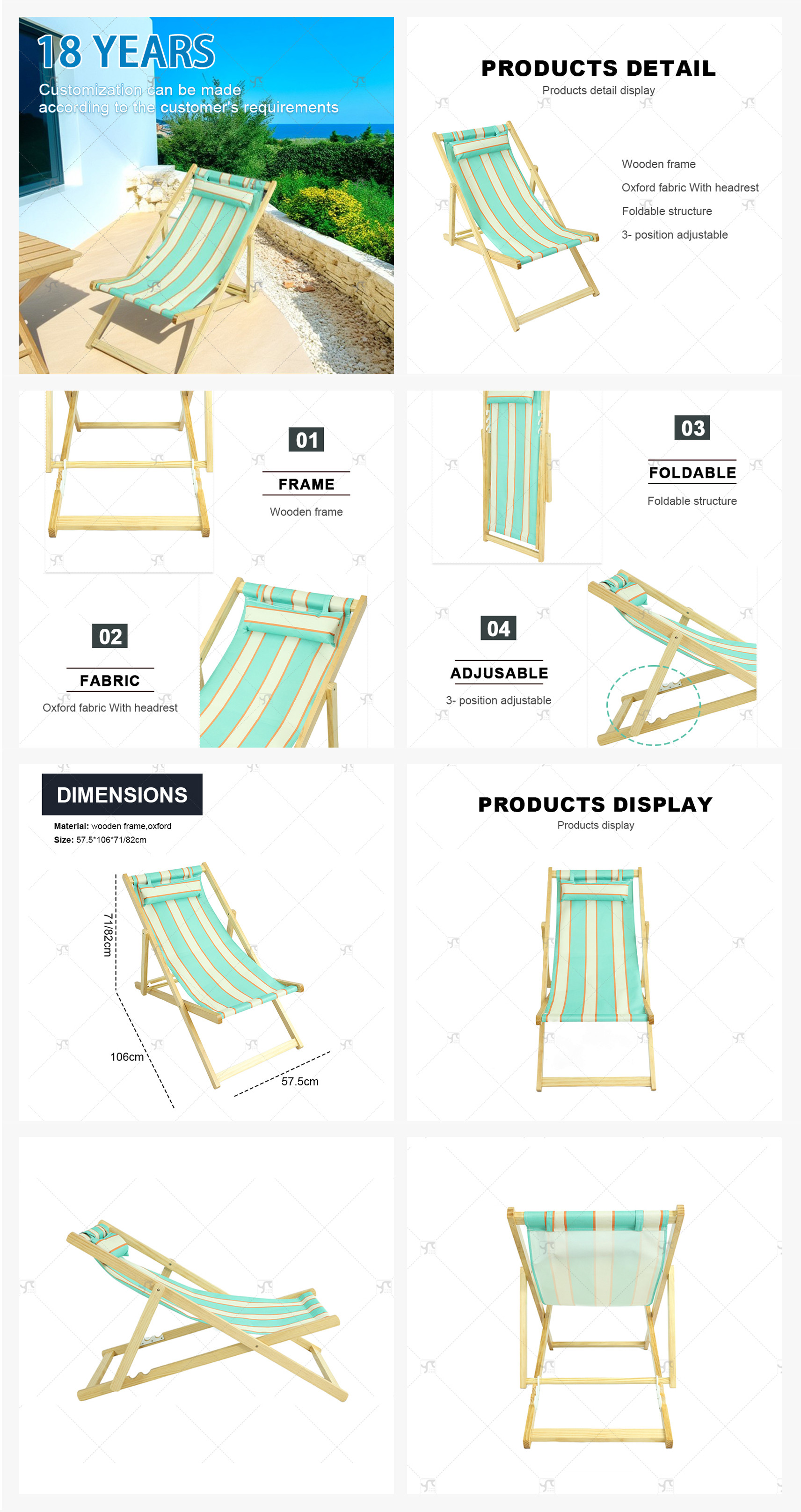 Camping Garden Chairs Outdoor Fashion Outdoor Beach Chair Wooden Adjustable Beach Outdoor Furniture Folding Outdoor Picnic chair