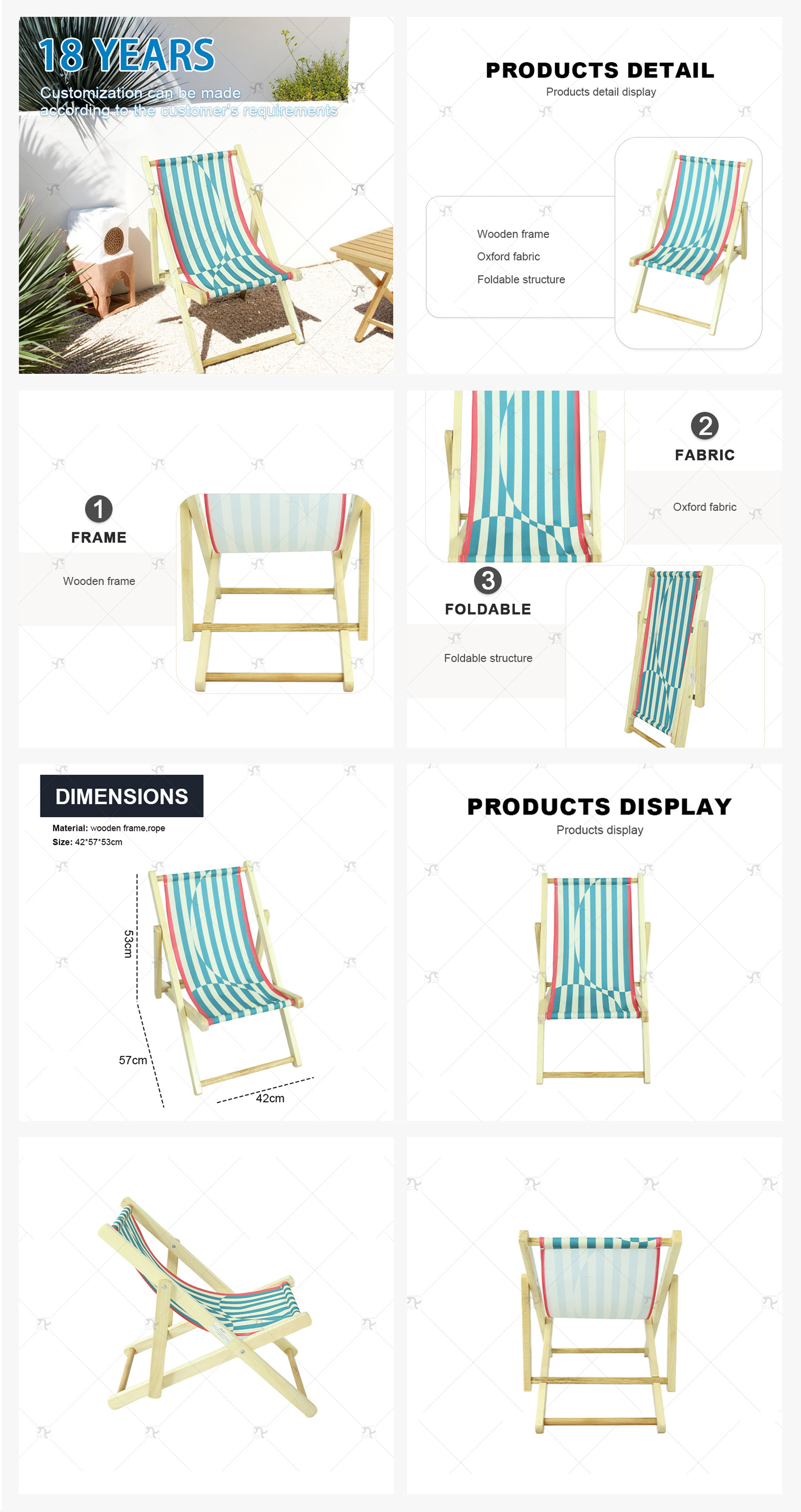 Outdoor Canvas Chair Sun Lounge Moon Chair for Kids Adults Folding Deck ChairModern Style Solid Wood Outdoor Furniture Foldable