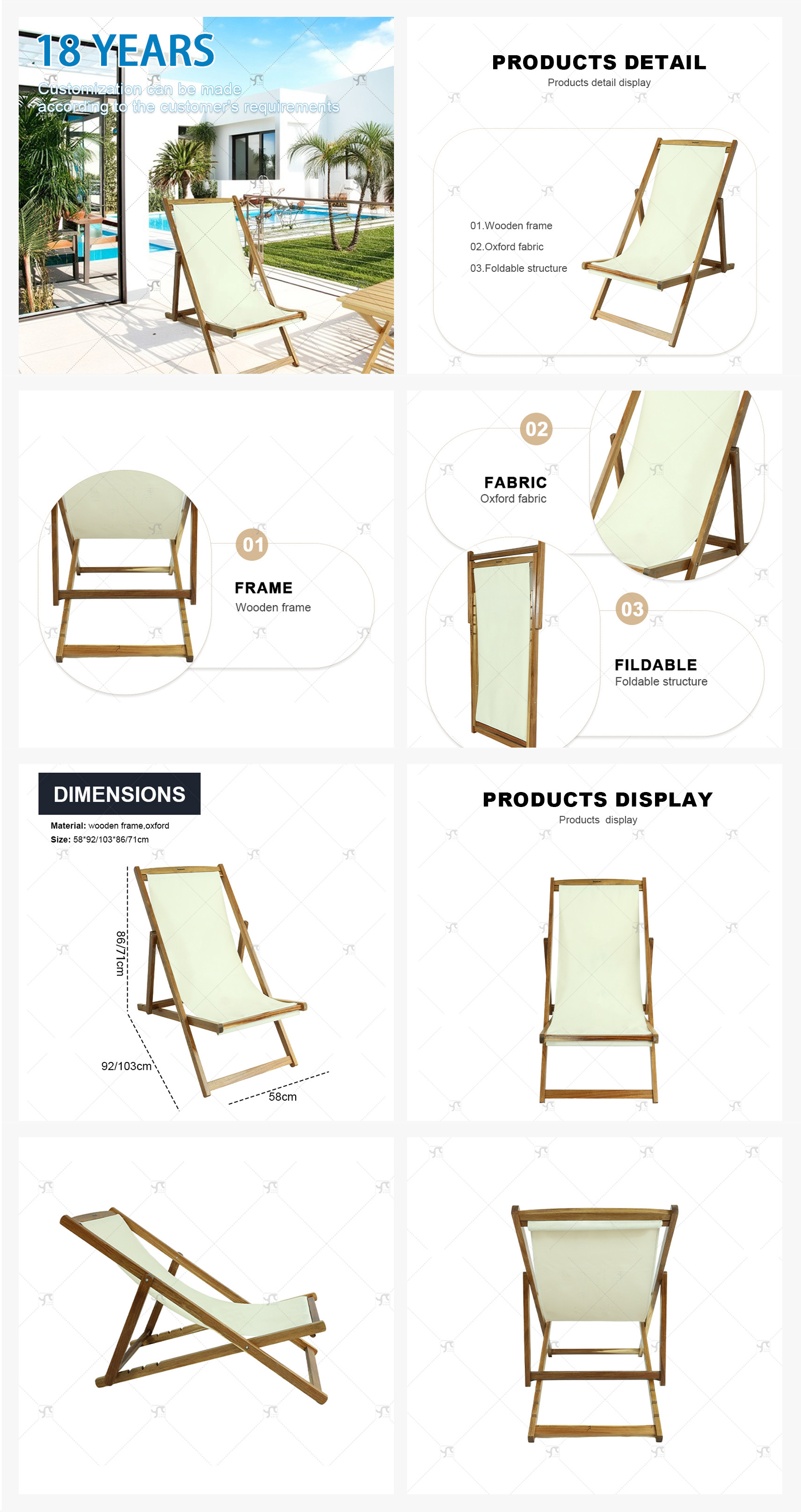 Outdoor Furniture Wooden Outdoor Lounge Chair Foldable Durable Oxford Fabric Light Weight for Balcony Garden Park or Beach