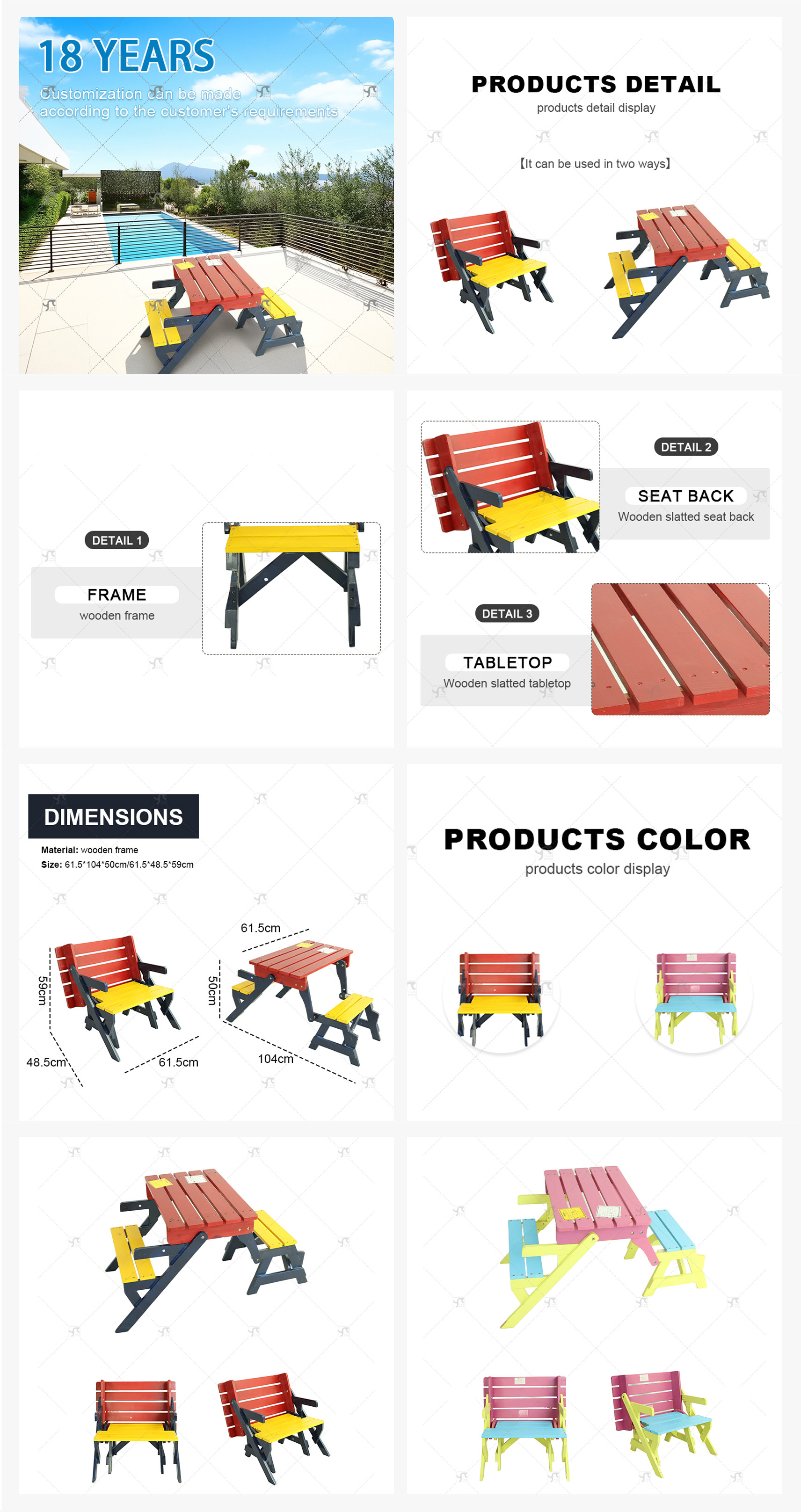 Wooden Outdoor Picnic Table and Chair Combination for Kids and Garden Furniture Patio Bench Set for Playing, Relaxing or Dining