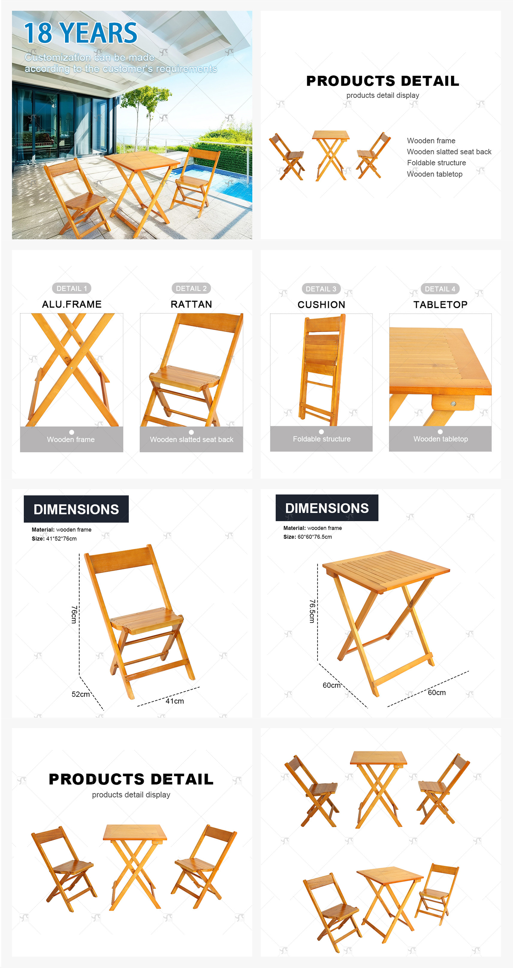 Outdoor Coffee Sets Foldable Wood Slat Table and Foldable Chair Camping Patio Dinning Steel Garden Chair Three-piece Sets
