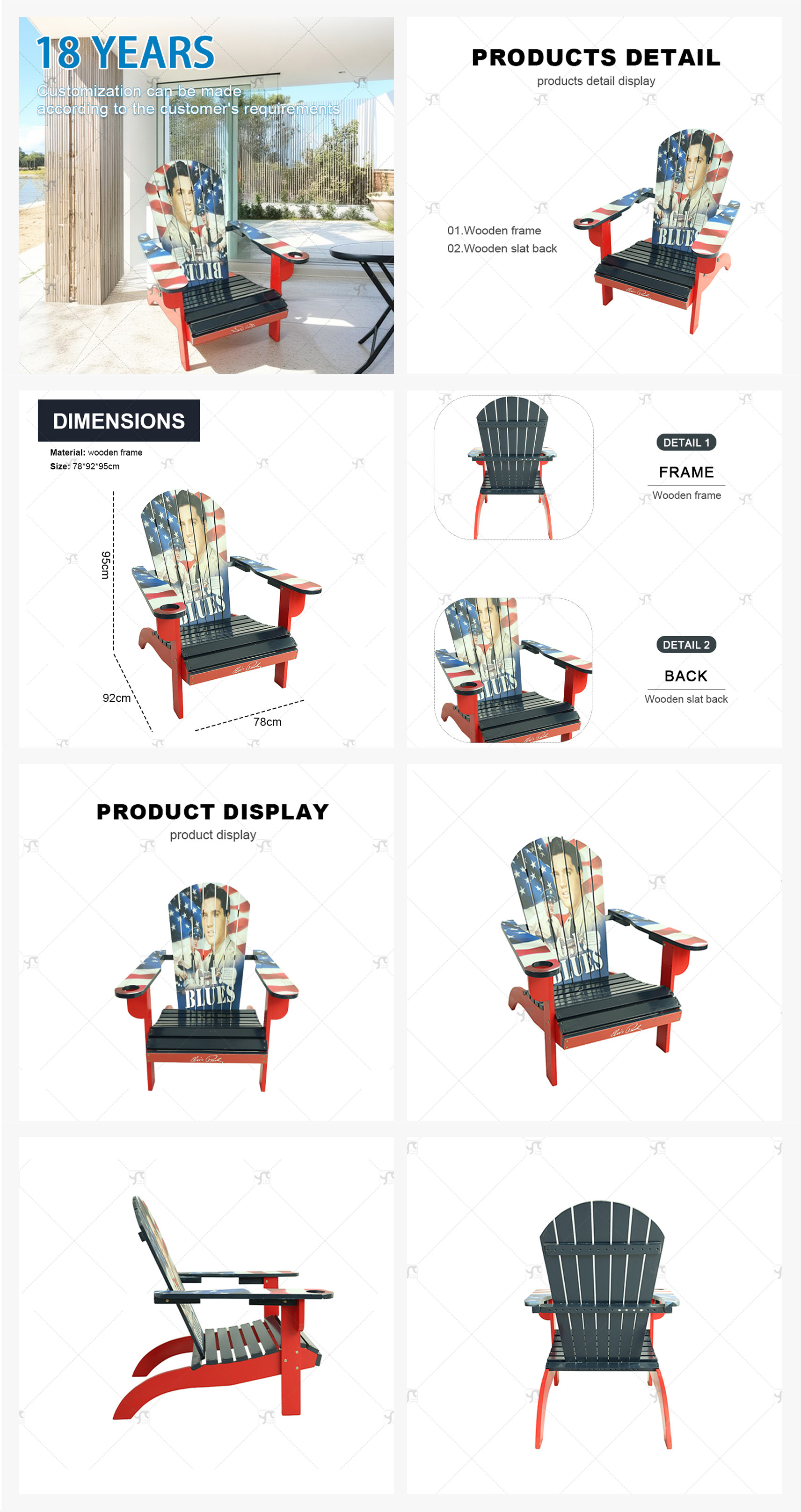 Modern Style High Quality Outdoor Chair Wooden for Patio Beach Garden Courtyard and Park Patio Garden Lounge Beach Chair Use