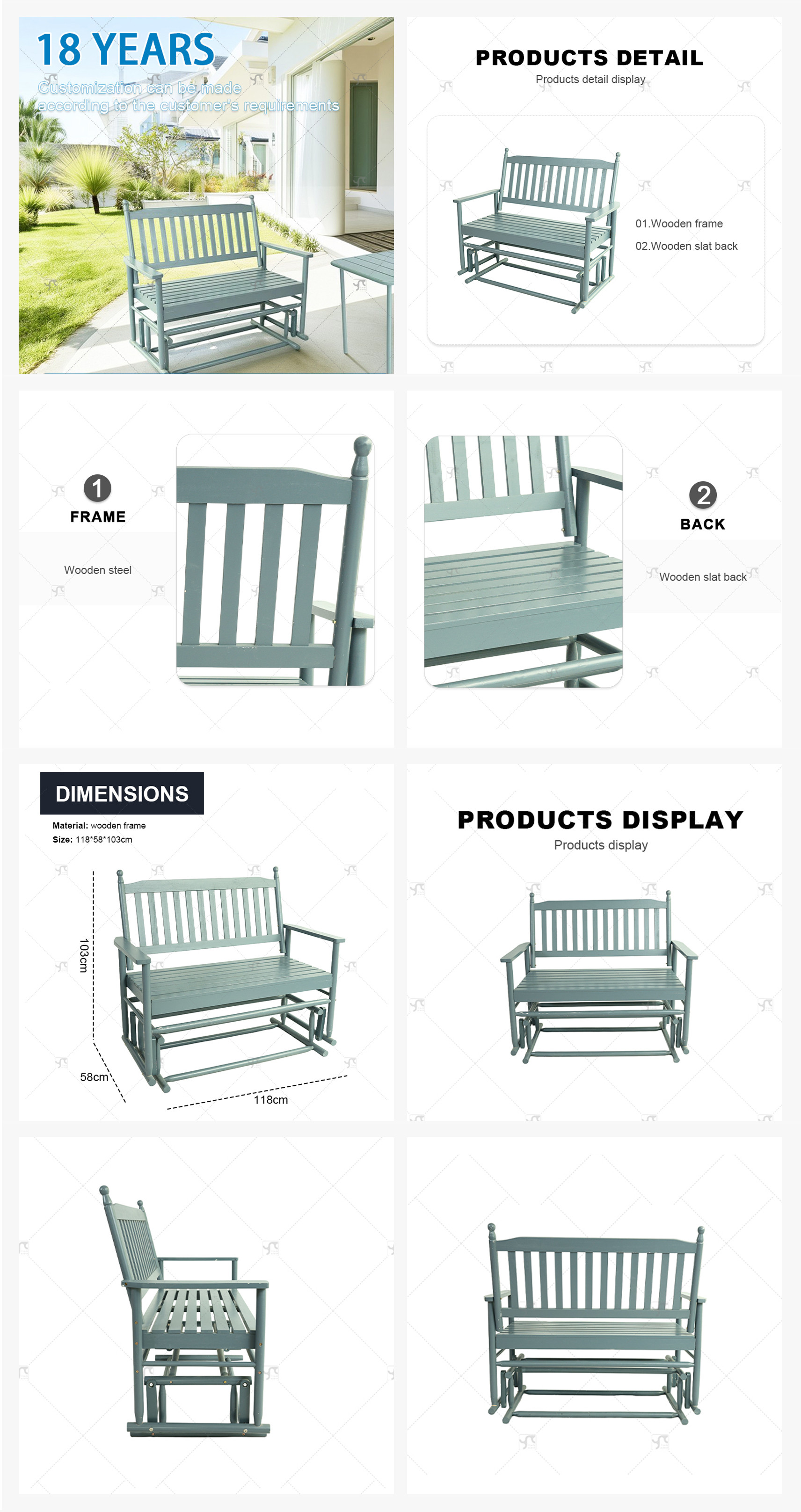 Modern Style Professional 2-Person Wood Bench Porch Lawn Balcony Backyard Simple Exterior Style Terrace Outdoor Rocking Chair