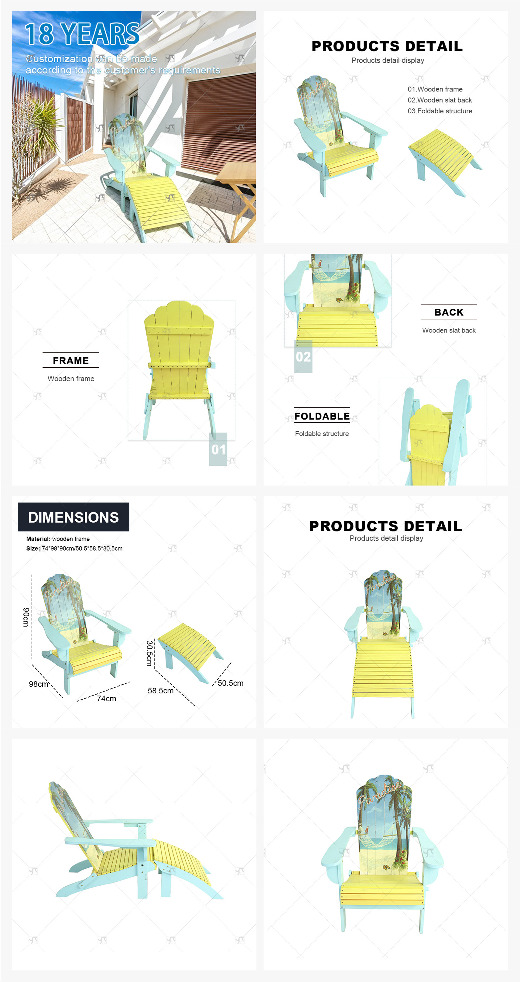Modern Wooden Folding Chair for Outdoor Leisure Foldable Recliner Stylish Design for Beach Pool Balcony Villas Courtyards Park