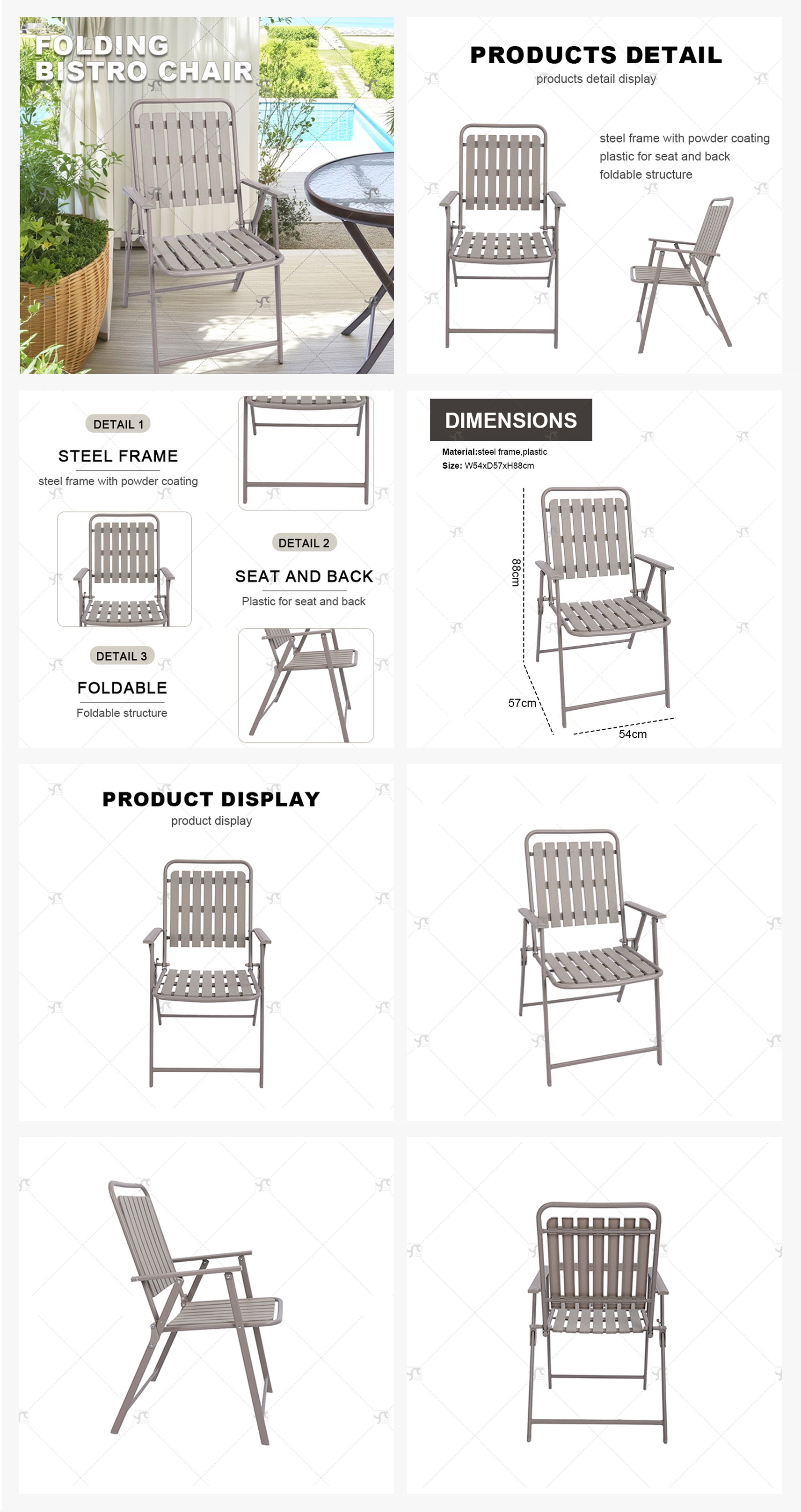 Outdoor Patio Metal Folding Steel Chair Furniture Metal Chair Color, Patio Steel Bistro Chair Garden Bistro Folding square Chair