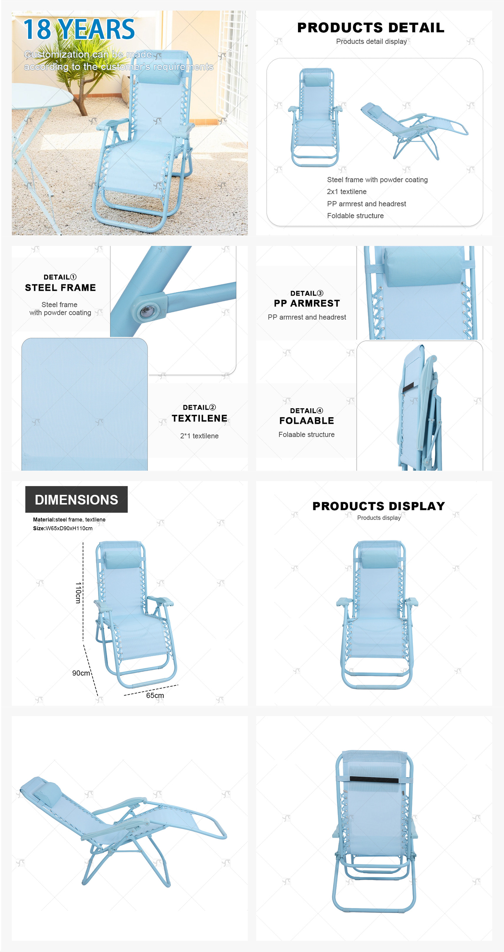 2x2 Teslin Modern Comfort Flex Metal Patio Chair with Arm Popular Outdoor Alu. Teslin Lounger Foldable Chair